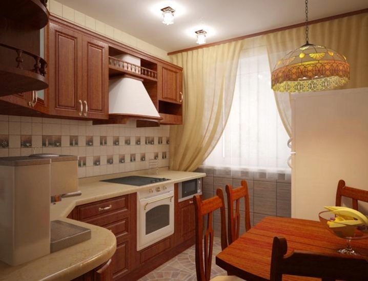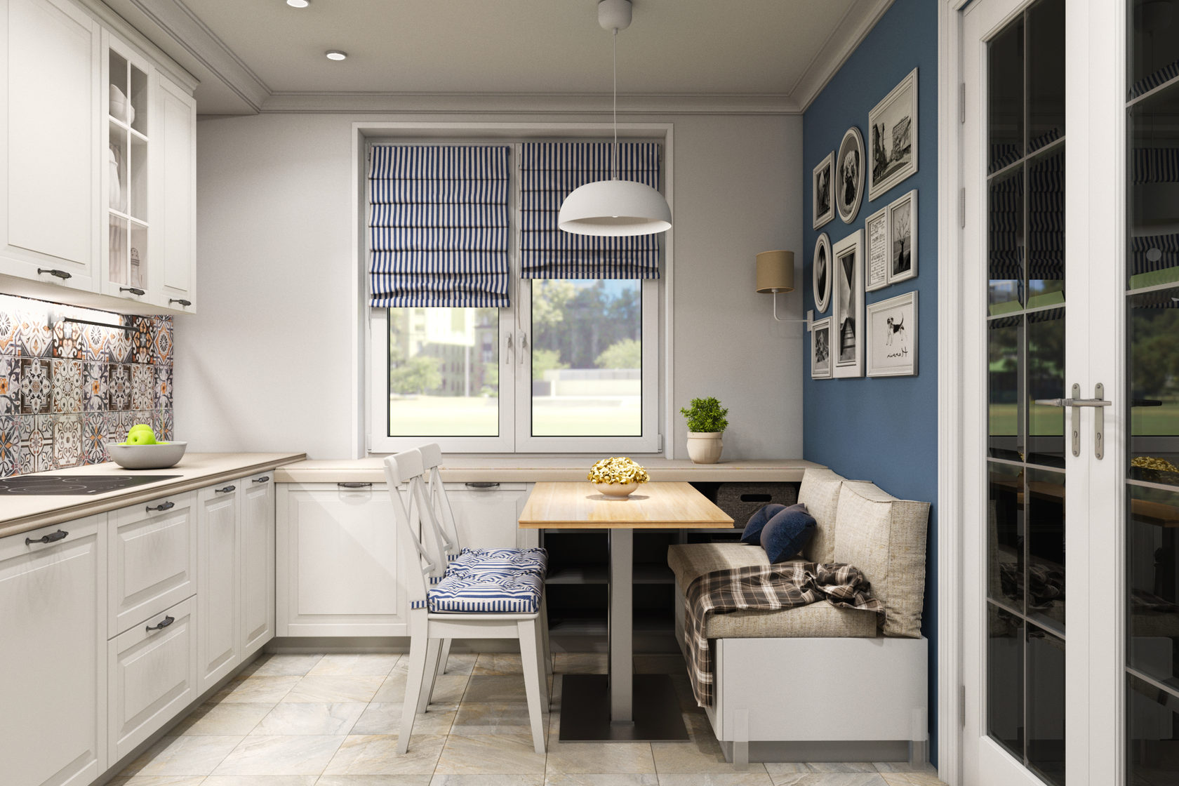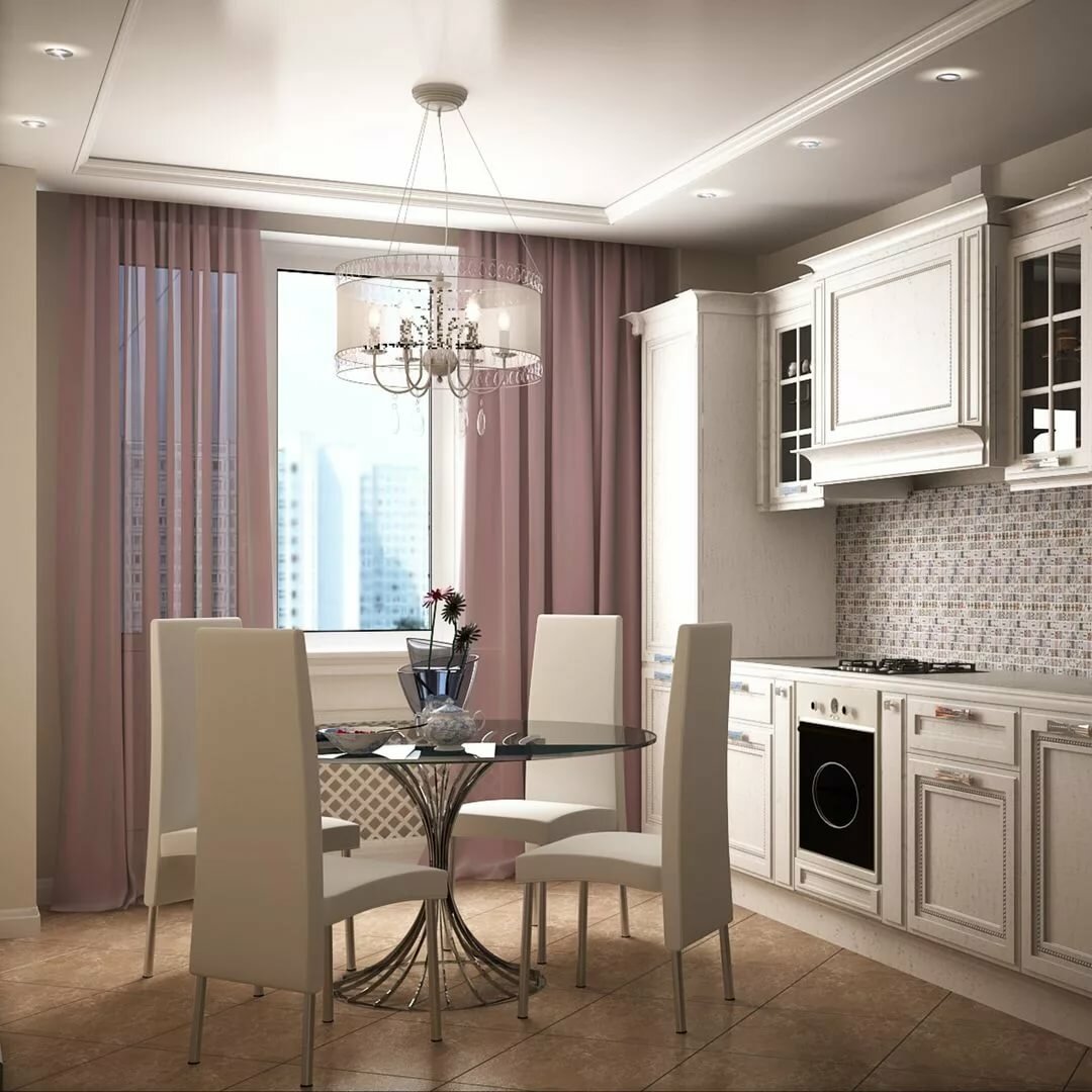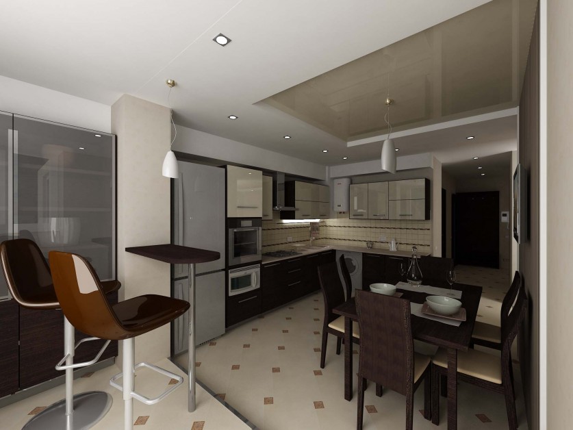 - Пример за класически кухненски дизайн. Централният елемент на стаята е масата за хранене.