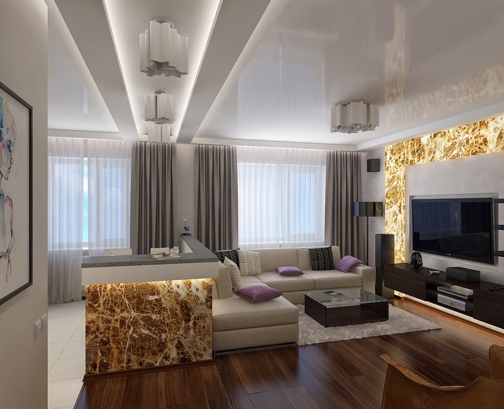 Що се отнася до изкуствената светлина, тя може да се използва за разделяне на стая на различни функционални зони.