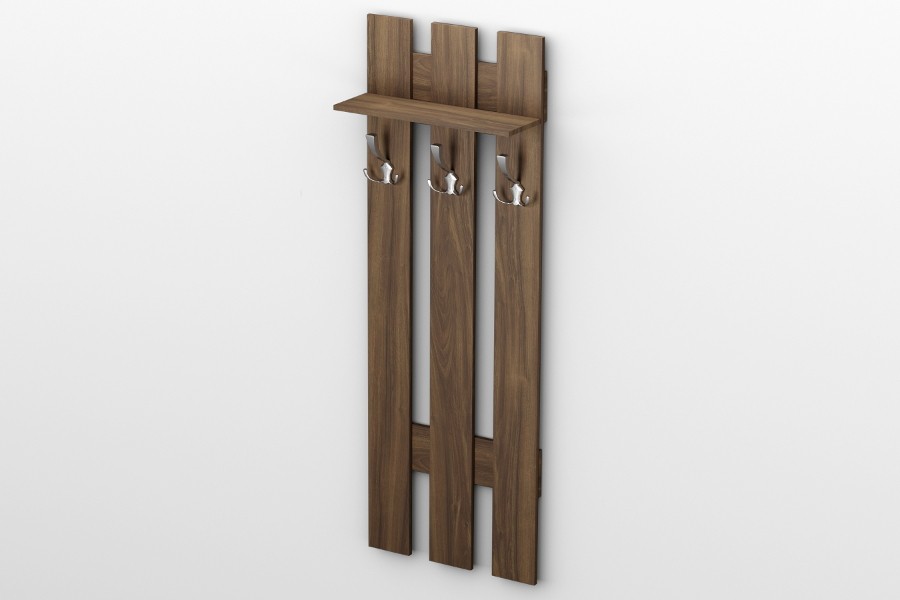 - Вертикален щит. Този дизайн е продукт, слизащ от рафта. Той предпазва дрехите от контакт със стенната облицовка.Дължината му може да е малка, но има модели, при които щитът се спуска към пода. Често такива закачалки се правят близо до входната врата в стената. Вертикалният панел може да бъде направен както от вертикални ламели, така и от един цял панел.