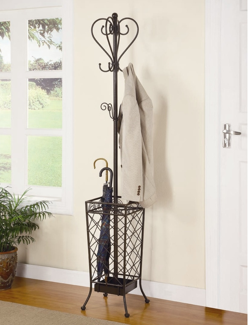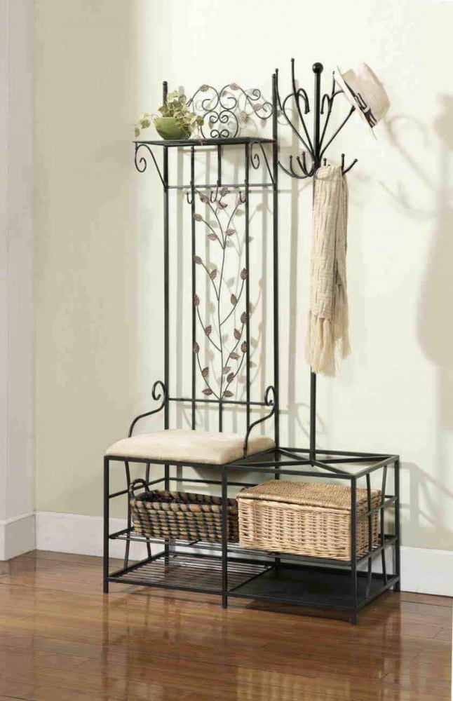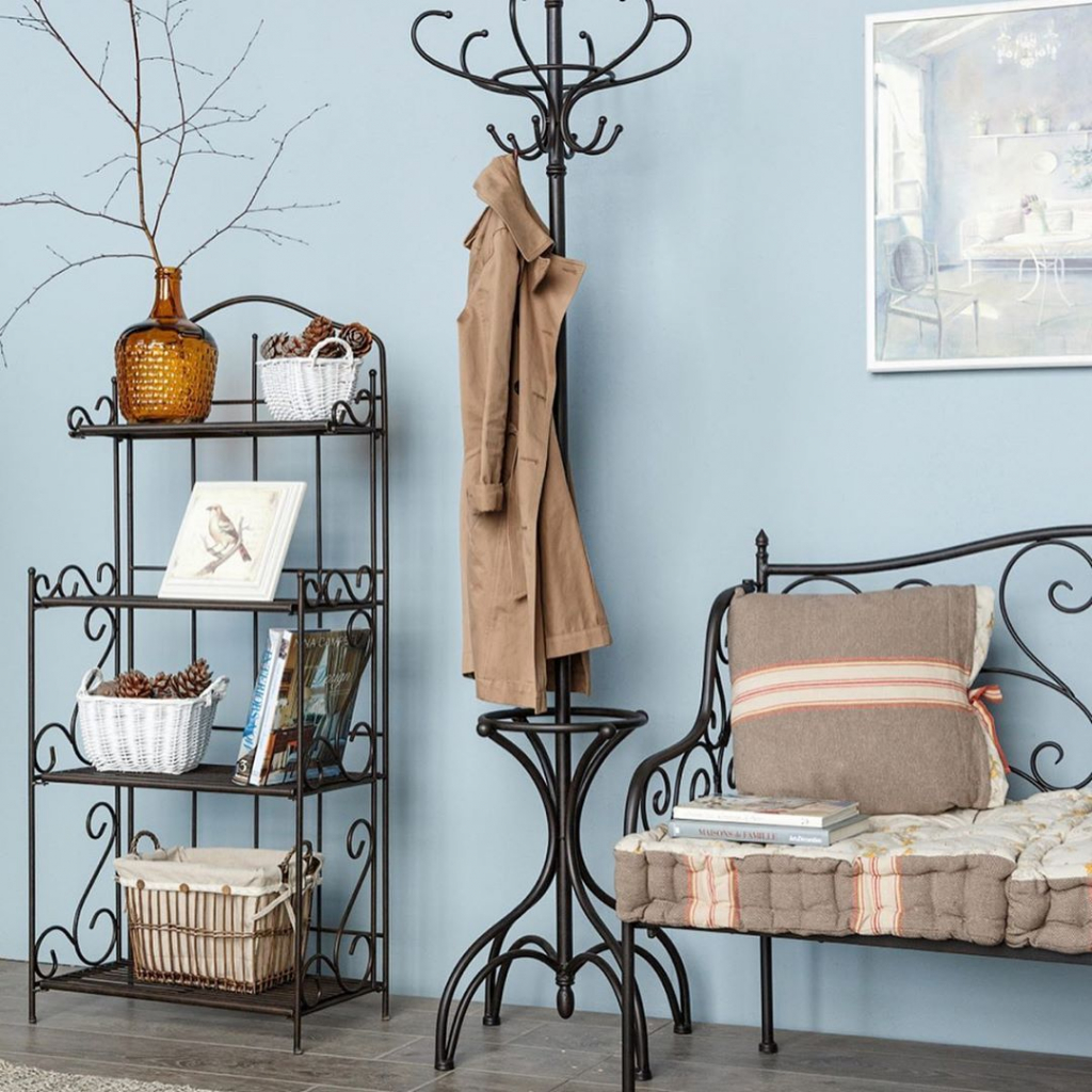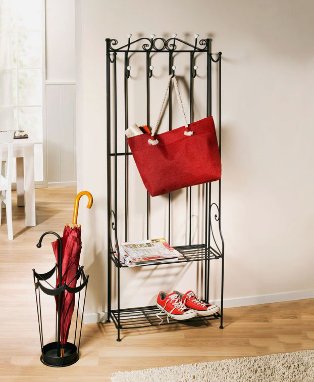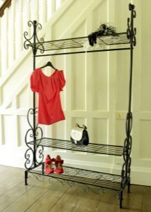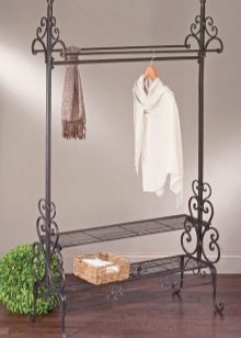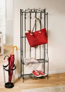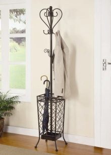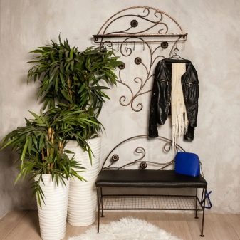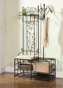 Закачалките от ковано желязо често се използват за допълване на големи гардероби. В повечето случаи такива продукти могат напълно да заменят мебелите в коридора. Металните модели изглеждат спретнато и заемат малко място. В същото време те доста ще се справят със съхранението на връхни дрехи, аксесоари и обувки.