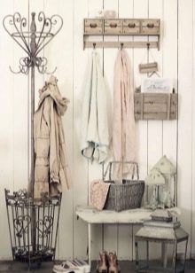 Това е нежен и изтънчен стил, дошъл до нас от Европа. Той олицетворява мекотата и домашния уют. Характеризира се с пастелни нюанси, плавни линии и флорални елементи. За коридор в стил Прованс, бяла закачалка или продукт в светли цветове е идеален. Интериорът ще бъде допълнен с опция, украсена с рисуване или фотопечат с изображение на цветя.