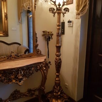 Обърнете внимание на моделите, украсени с вензели, къдрави къдрици и други шарки. Продуктите с изкуствена възраст са страхотни. Много дизайнери избират закачалки, допълнени от ковани лози или плодове. Такива елементи внасят италиански вкус в интериора.