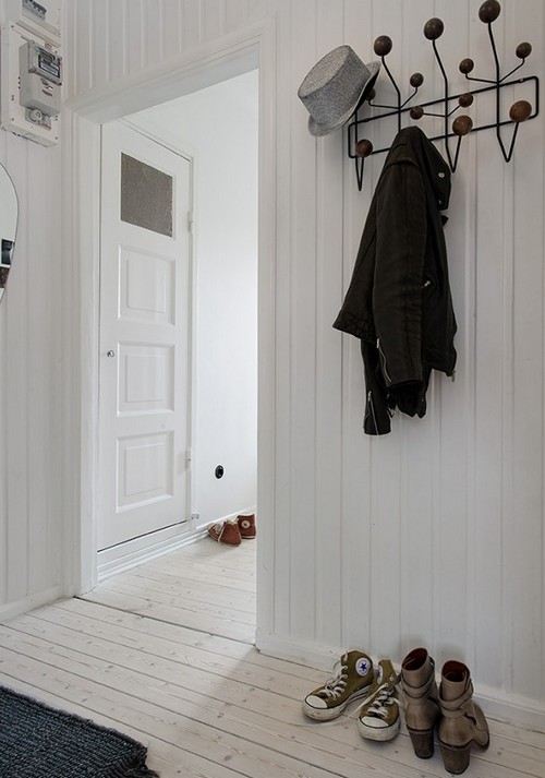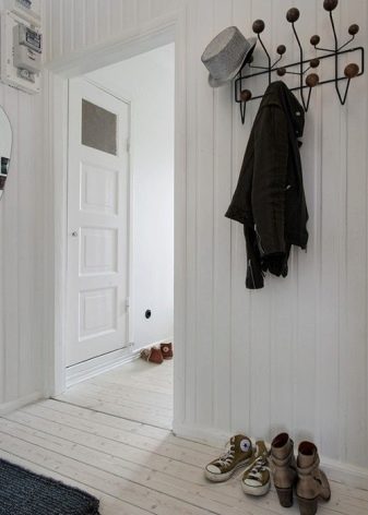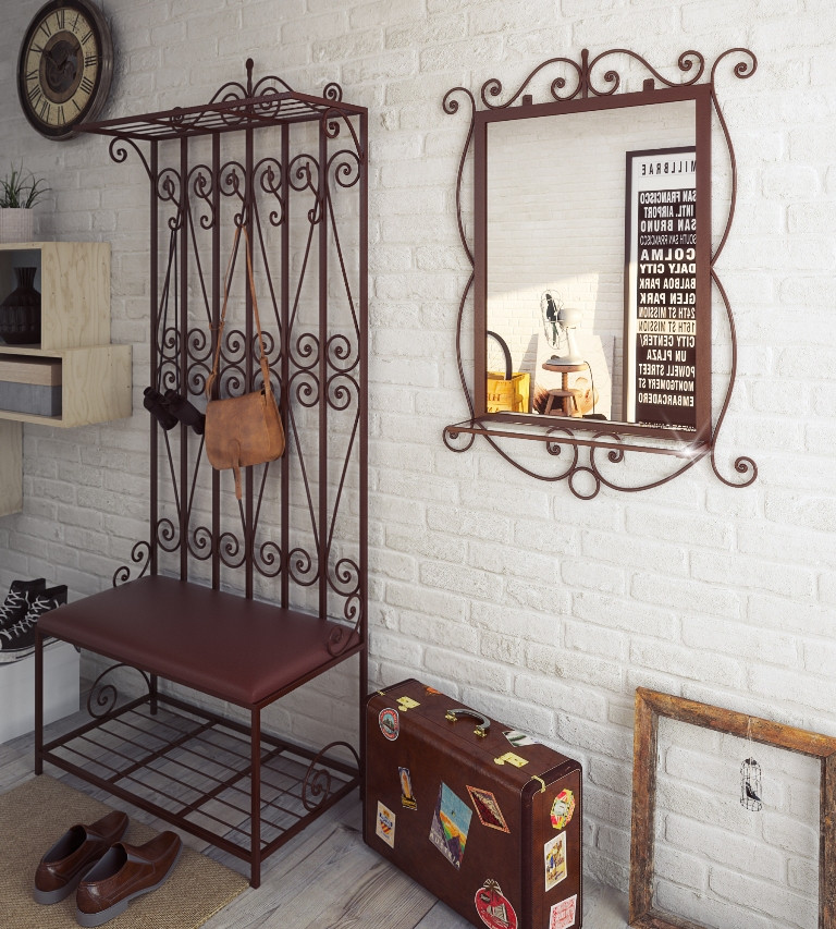 Ако интериорът е добре обмислен, в стаята ще цари атмосферата на горещото и слънчево Средиземноморие. Дизайнерите често използват подови настилки от естествен камък. А също така плочките и порцелановите каменни изделия са широко разпространени. Елегантната закачалка идеално се вписва в цялостния стил. Такъв елемент ще изпълнява не само важна практическа, но и естетическа функция.