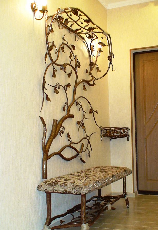 За компетентния дизайн на жилищното пространство майсторите на коване са разработили много модели закачалки. Те се различават не само по външен вид, но и по размер, форма и местоположение.