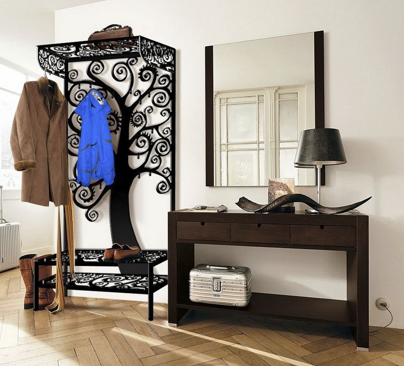 Дизайнерите използват ковани закачалки в коридора от няколко години. Те станаха широко разпространени поради високите си естетически качества и други характеристики. С помощта на ковани продукти можете изгодно да победите свободното пространство, както и да добавите практичност и комфорт към интериора.