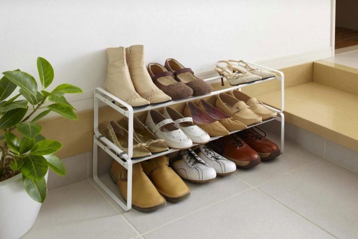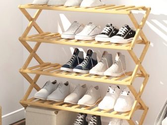 - Сгъваем рафт. Компактен, побира много чифтове обувки, сгъва се. Ако не е необходимо, той се съхранява в килера. Много е удобно, ако пристигат гости.
