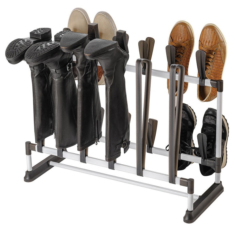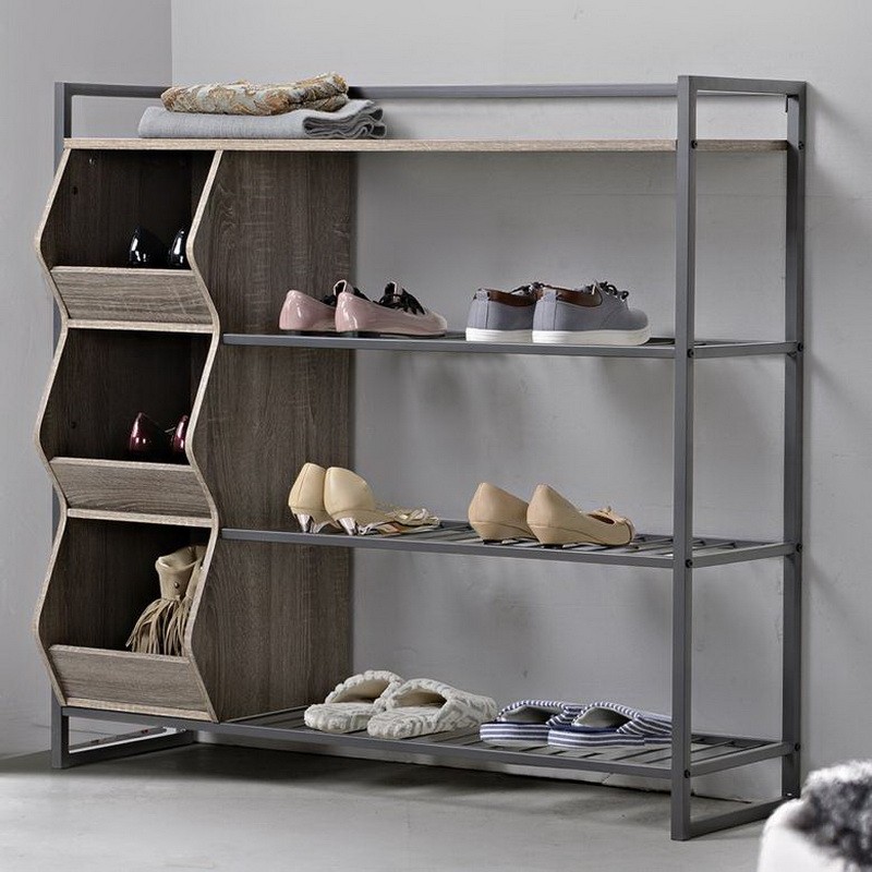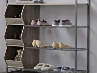 - Под формата на багажник. Няма рафтове, вместо тях се използват гребла. Те могат да бъдат дълги (за ботуши) и къси (за останалите обувки). Много просторен и стилен модел.