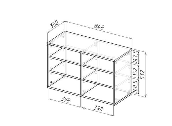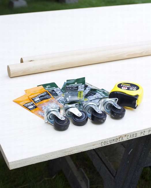 Изработен е от ПДЧ и плоскости с дебелина 1,6-1,8 см, могат да се използват листове от шперплат, палети. Освен това се закупуват кръгли калибрирани свързващи пръти. Дължината и ширината на дъските, броят на рафтовете се избират въз основа на размера на коридора.