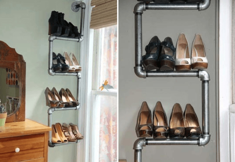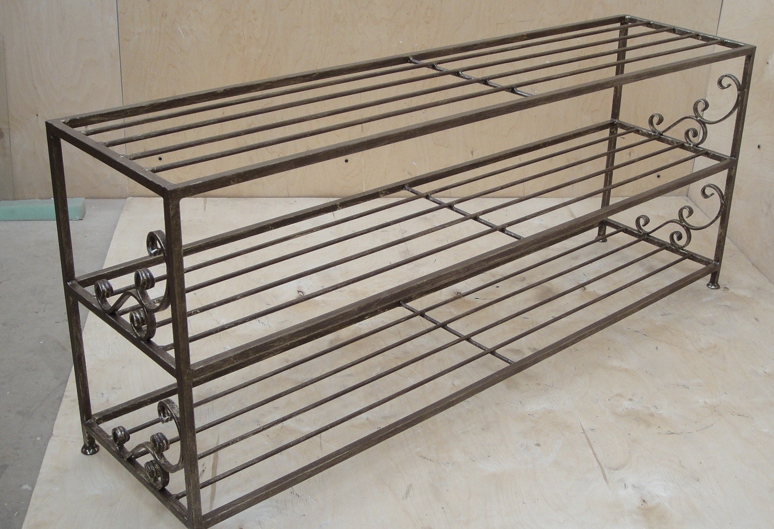 Ако сте запознати с коването на метал, горещо или студено, можете да създадете кован модел. Такъв рафт се прави според чертежи, намерени в интернет, или според вашите собствени. Веднъж направени, всички обувки могат да бъдат поставени върху него. Дизайнът е обемен и тежък. Добър за използване в коридорите на селски къщи.