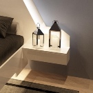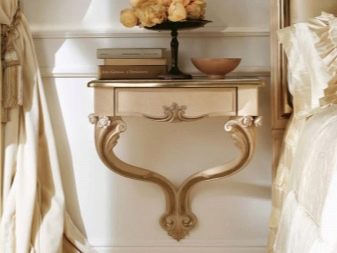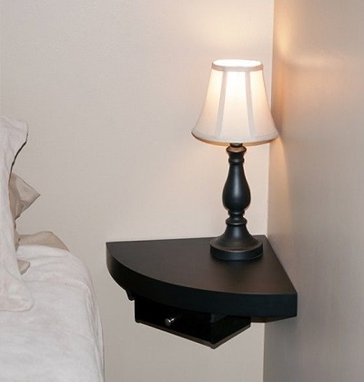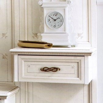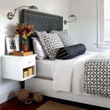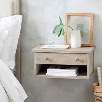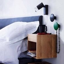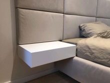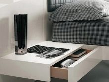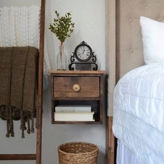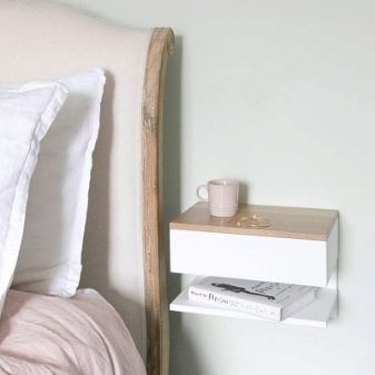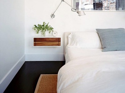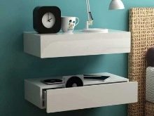 - Малък размер... Повечето окачени нощни шкафчета са удобни и компактни. Като правило те се допълват само от няколко рафта и чекмеджета.