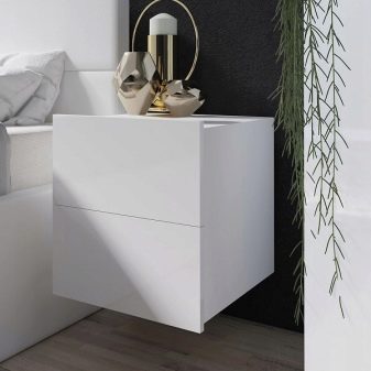 Висящите нощни шкафчета се използват както в малки апартаменти, така и в големи. Те не заемат много свободно пространство, но в същото време се различават по функционалност и простор.