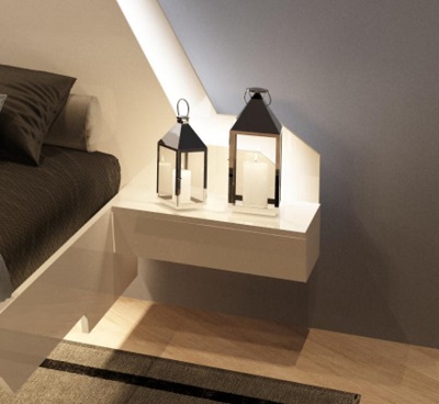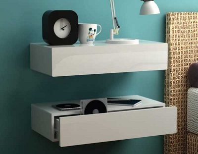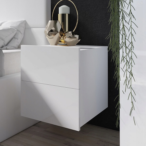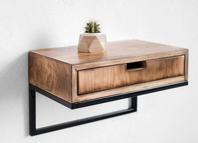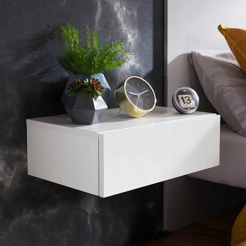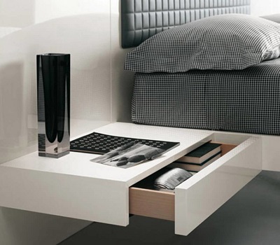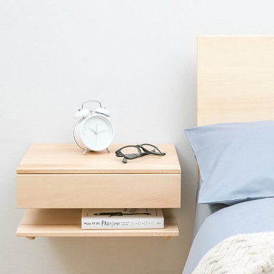 Висящите нощни шкафчета в този стил изглеждат страхотно в светли и просторни стаи. Те им придават лекота и ефирност. Отделно трябва да се отбележи, че липсата на ненужни декоративни елементи може значително да намали производствените разходи.