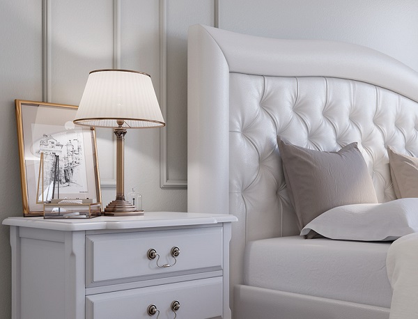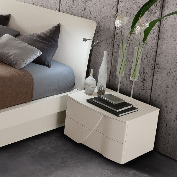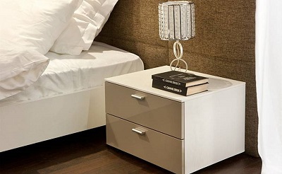 - Просторност... Дори и най -малката нощна шкафче е подходяща за съхранение на всички неща, които винаги трябва да са под ръка. На рафтовете има място за малка настолна лампа, телефон със зарядно устройство, чаша вода и други необходими дреболии. По -големите шкафове могат да се използват за съхранение на козметика или бельо.