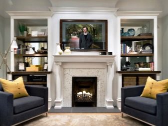 - Ако спалнята ви има електрическа камина, екранът може да бъде окачен точно над нея. Тази опция ще изглежда впечатляващо и определено ще привлече вниманието. Въпреки факта, че това е само имитация на истински огън, между камината и оборудването трябва да се остави разстояние от около един метър.