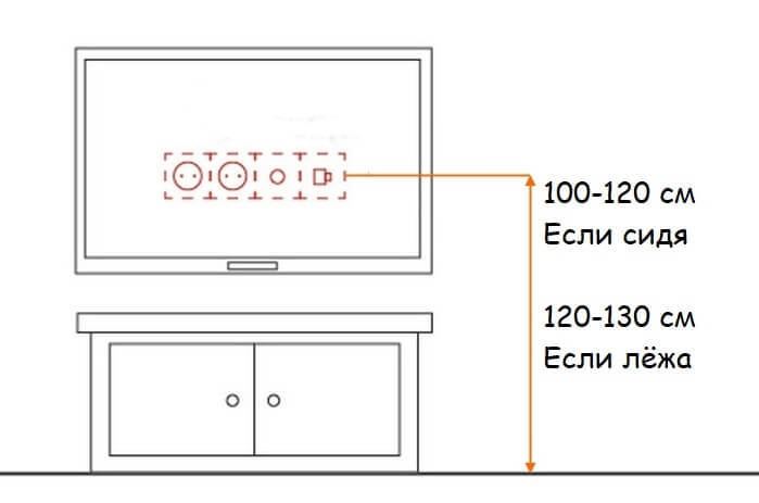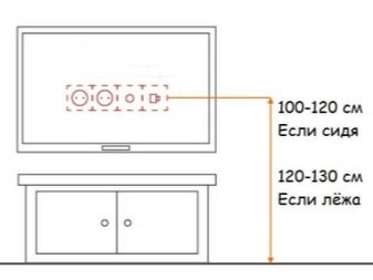 Има и някои препоръки относно височината от нивото на пода. Максималната височина на екрана в хола (антре, спалня, хол) трябва да бъде около 120 сантиметра. Ако на този етап не е възможно да инсталирате телевизионния приемник, по -добре е да го повдигнете малко по -високо, но не и да го спуснете надолу.