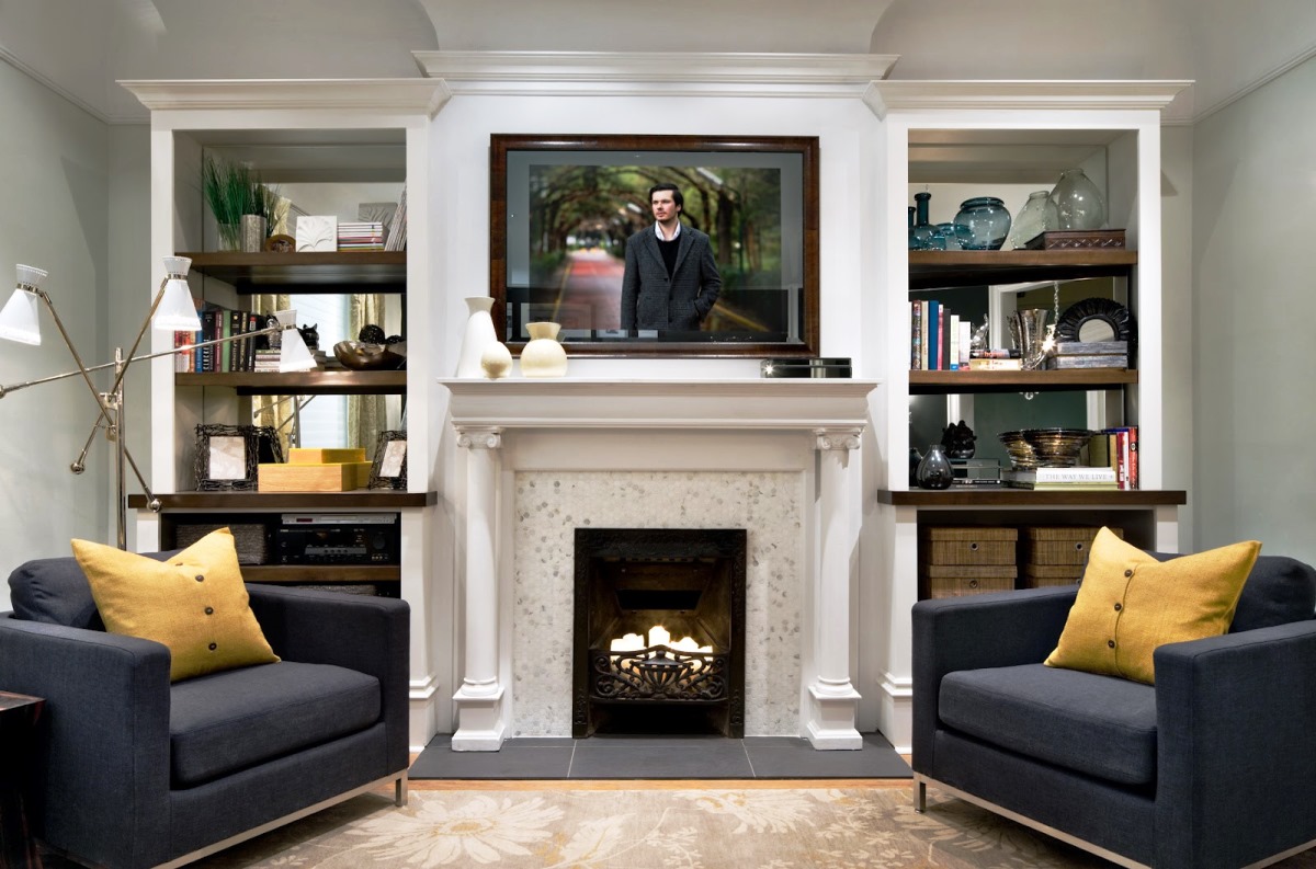 Тези характеристики показват, че обектите на камината са защитени от пламък. Въпреки това телевизорът може да бъде окачен само на разстояние 0,5 метра от ръба на камината.