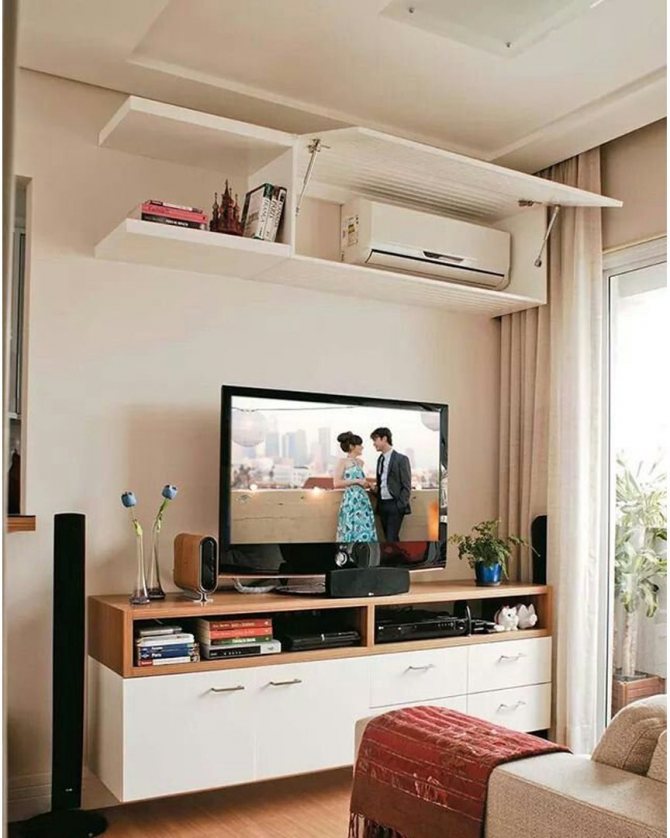 По -добре е да избягвате тази комбинация от оборудване, тъй като климатикът заедно с телевизора не винаги ще изглежда спретнат и естетически.