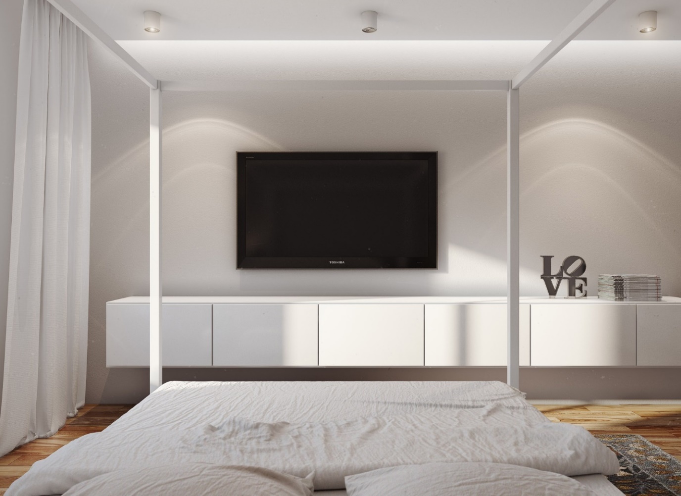 Колко високо трябва да бъде окачен телевизорът в спалнята?