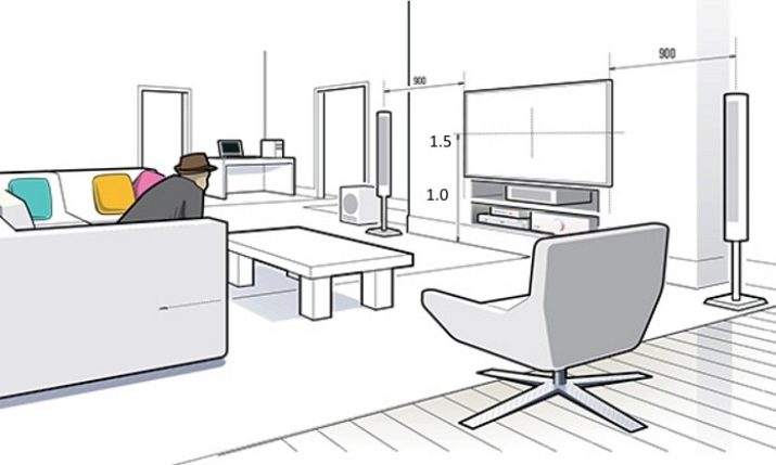 Стандартната височина, на която може да се позиционира телевизорът, варира от 1,4 до 1,6 метра (от пода до центъра на екрана). Това е най -добрият вариант за стаи със стандартни размери. Ако стаята има високи тавани, оборудването може да се повдигне до ниво 1,6-1,8 метра.