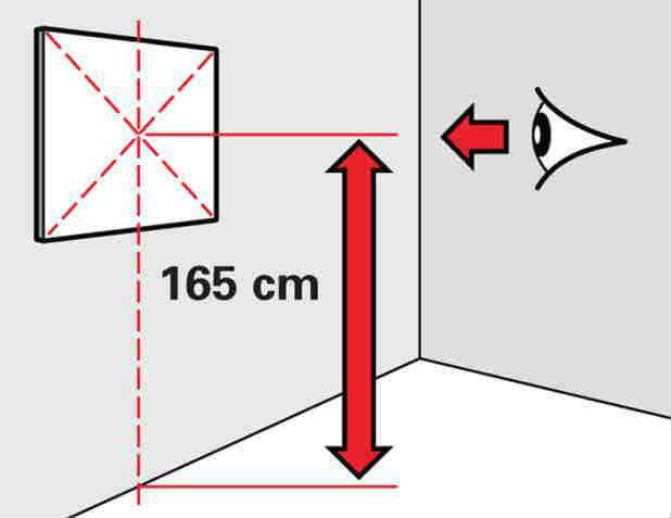 За да определите най -удобното място за телевизора, достатъчно е да седнете на обичайното си място (в кресло, на легло или на диван, от който сте свикнали да гледате любимите си филми или програми) и да представите нов екран на стената пред вас. Препоръчва се техникът да виси на нивото на очите, така че фокусната точка да е в центъра на екрана.
