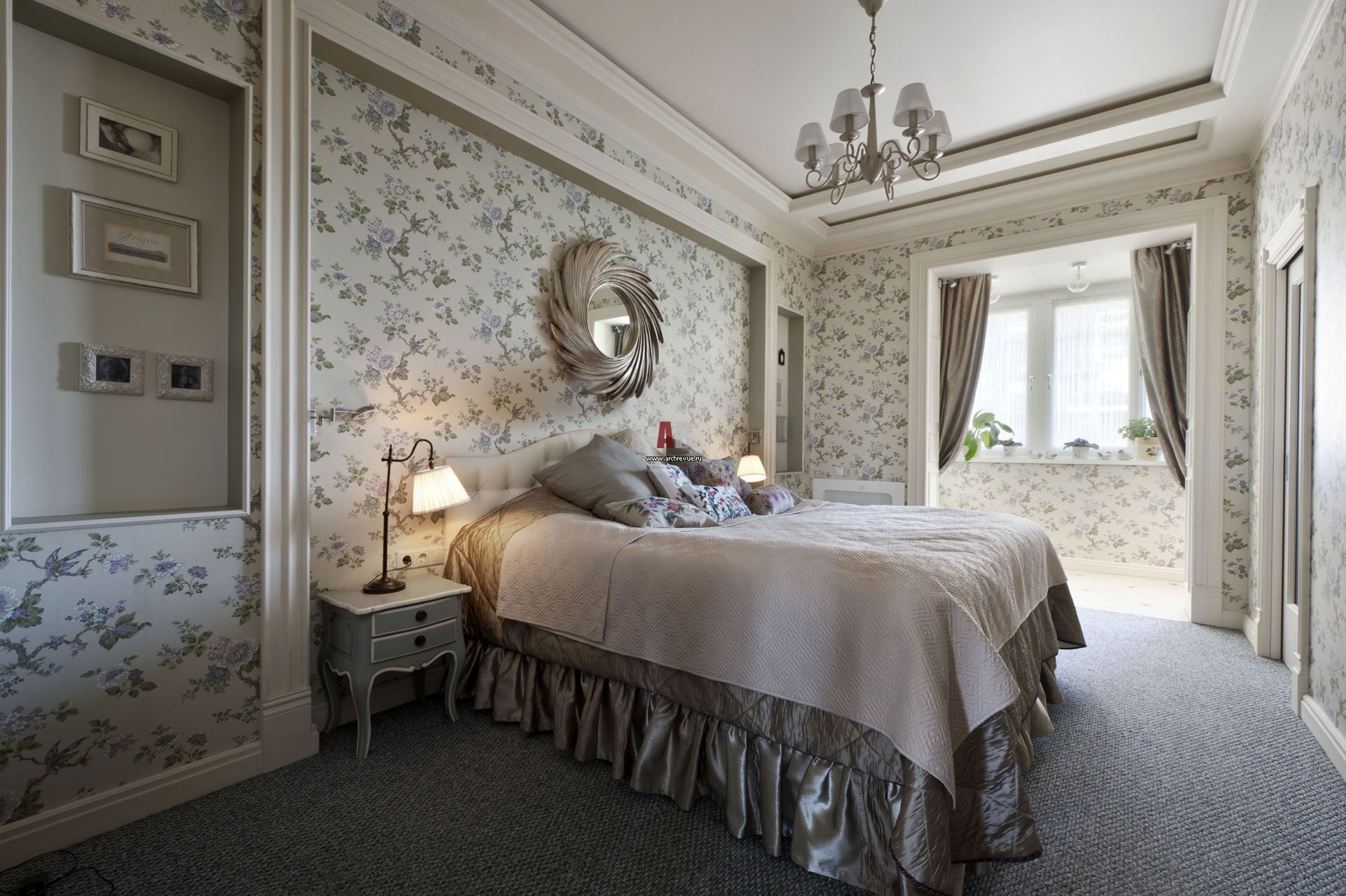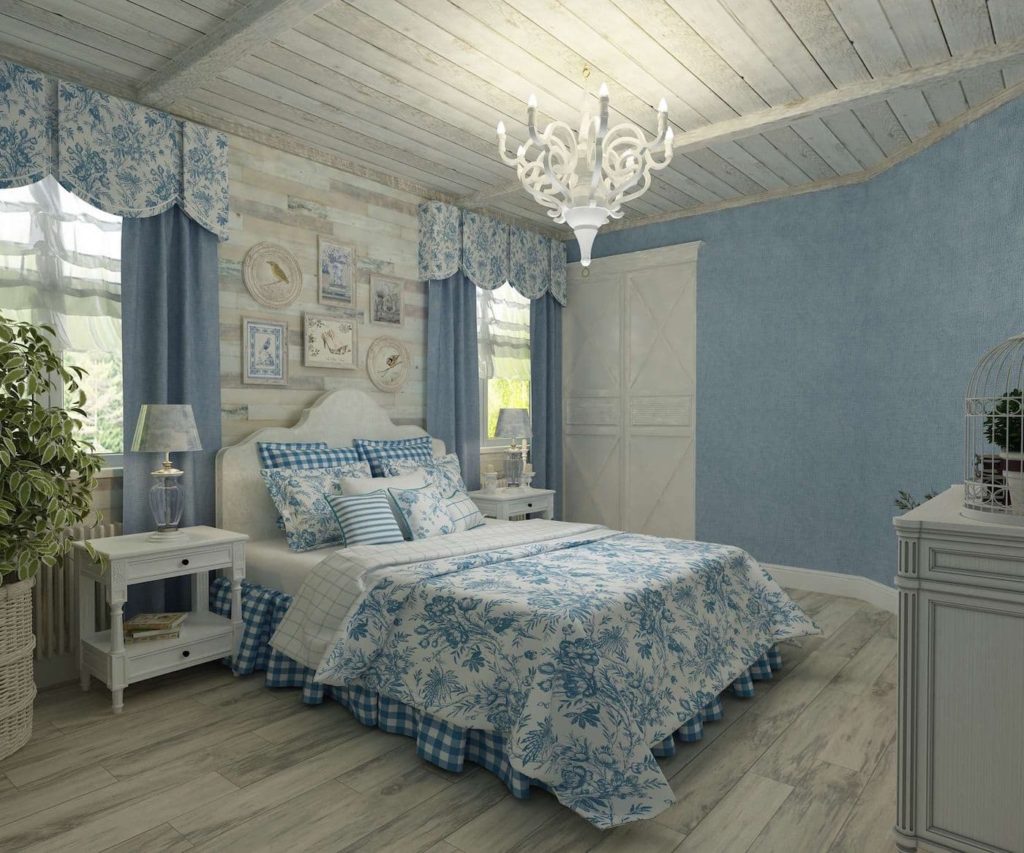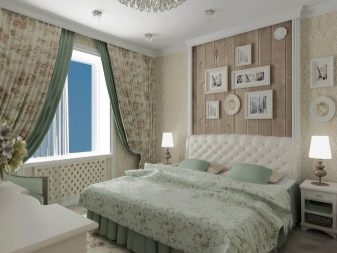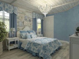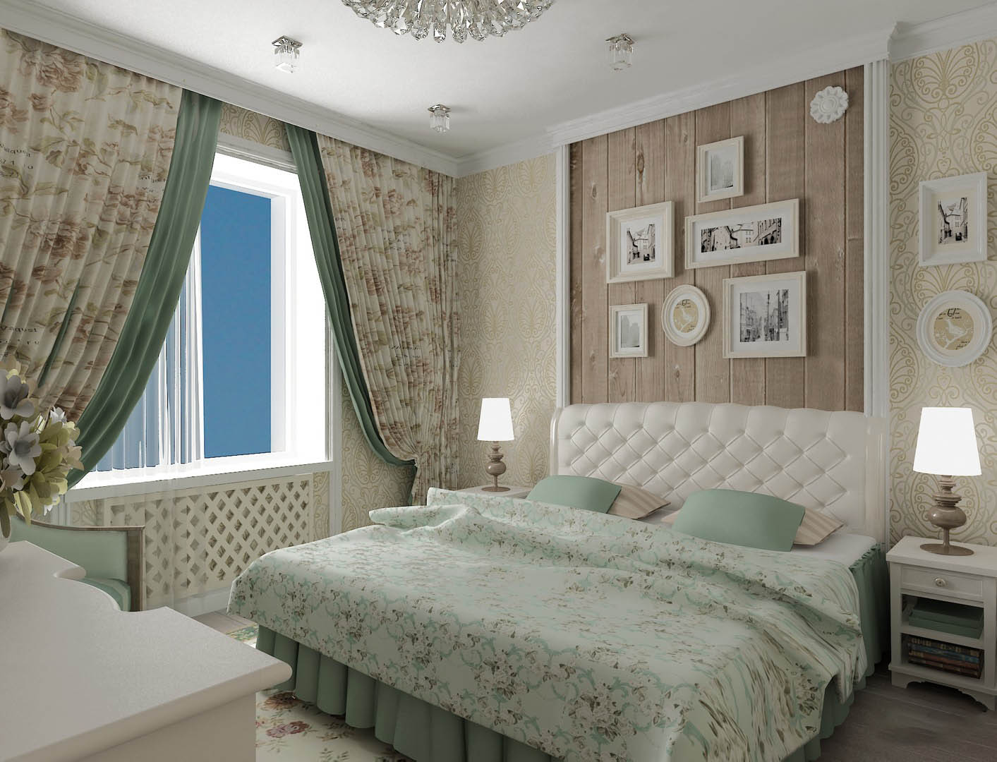 Уютен и прост стил. Най -доброто решение за спалня от 13 квадратни метра. Прованс често се използва при разработването на интериорен дизайн за женски спални. Типични нюанси: светли, млечни, розови. Тапетите със снимки ще изглеждат добре. Възможно е да се използват мебели от ратан.