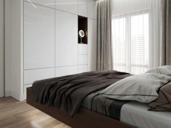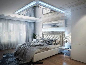 Спалня от 13 квадратни метра не може да се похвали с голяма площ, така че всички възможни техники се използват за визуално разширяване на пространството. Популярни решения: