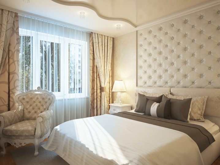 Ако говорим за цветовата схема, тогава е по -добре да декорирате спалнята в светли, бежови цветове. На прозорците например можете да окачите кремави завеси, ушити от дебел плат.