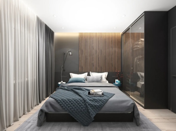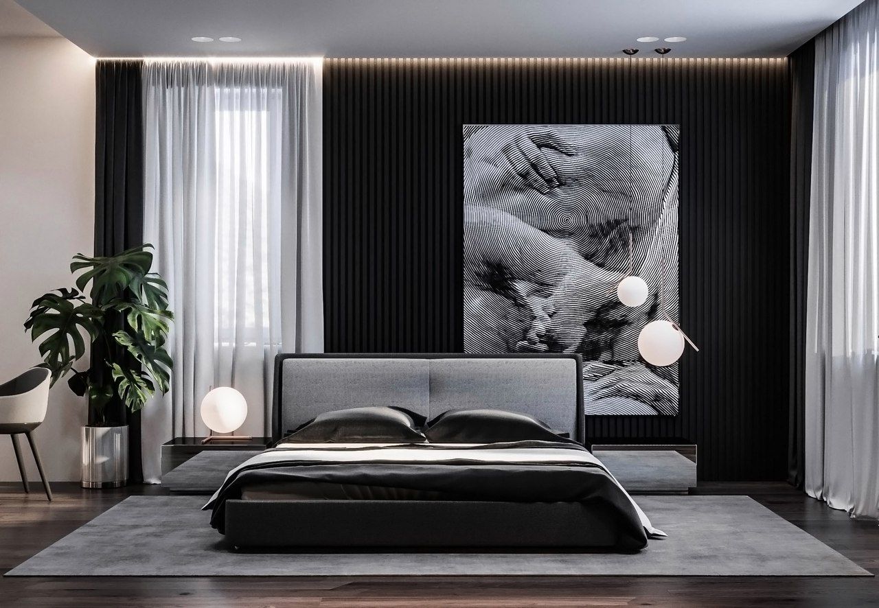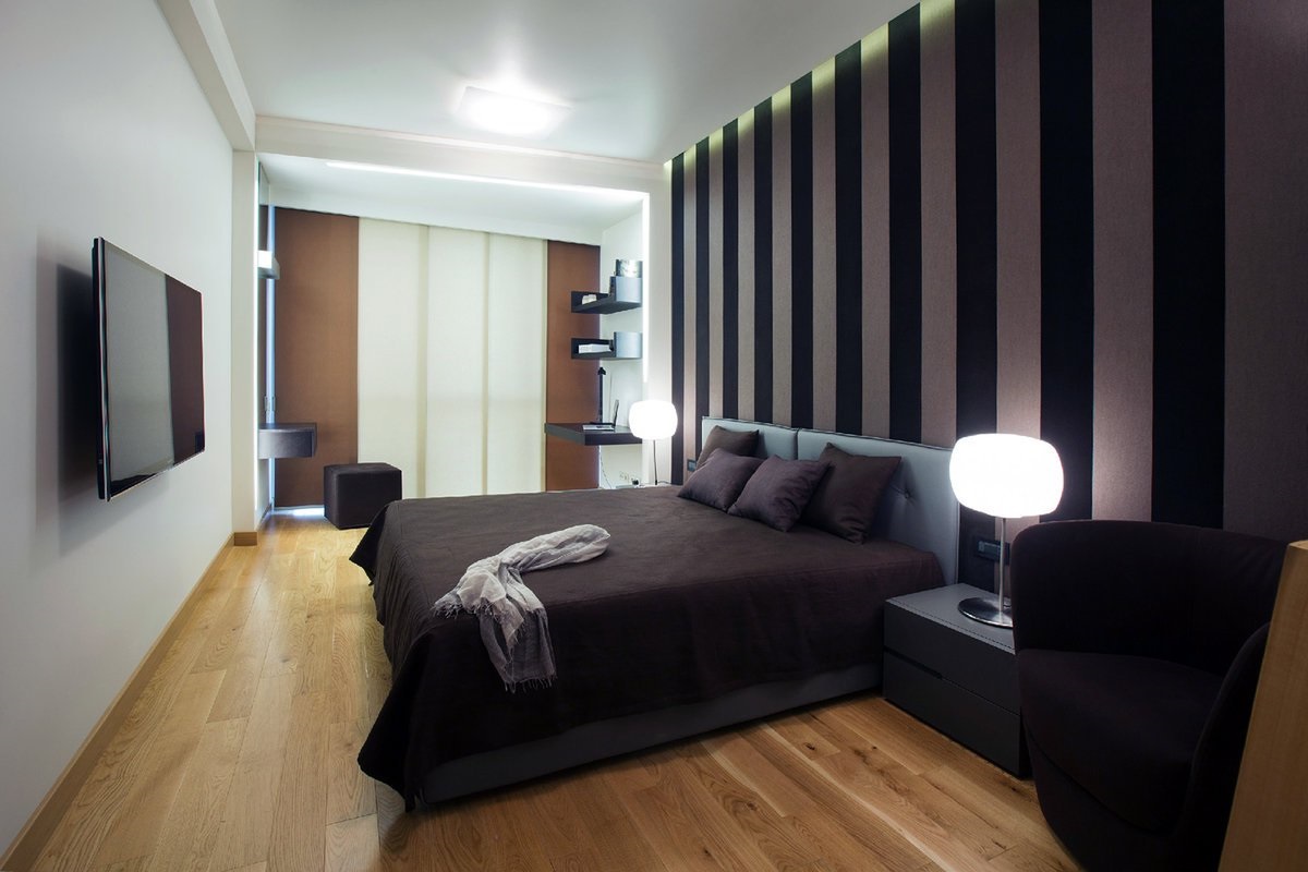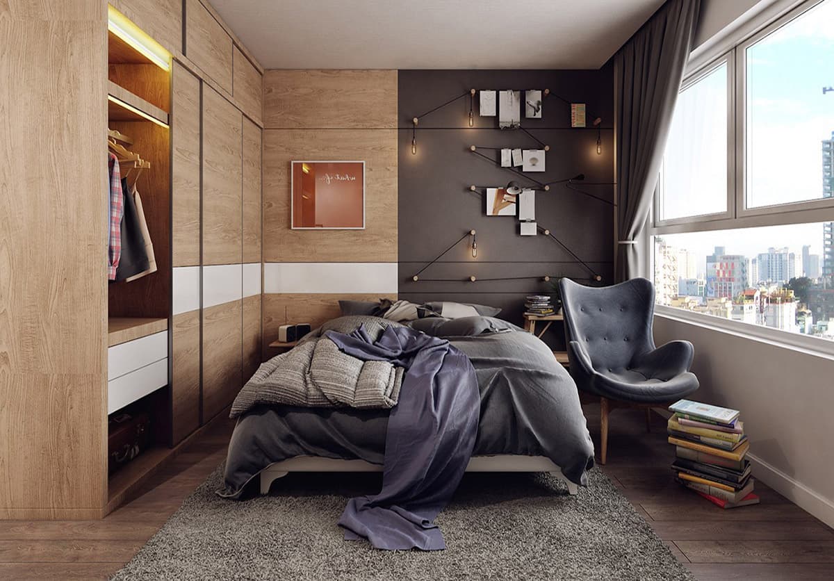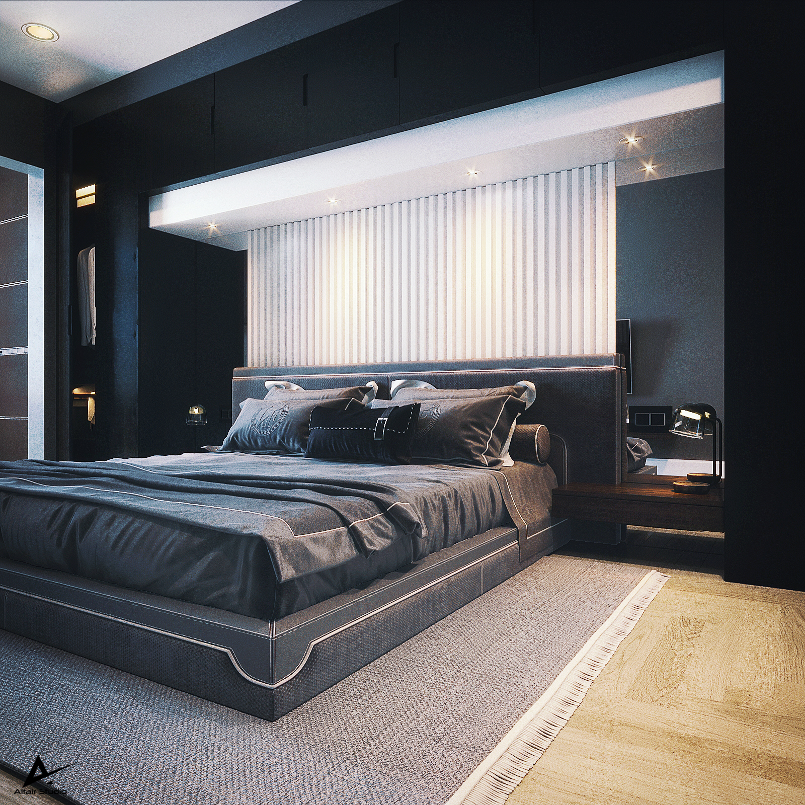 Дизайнът на спалнята на представителя на силния пол не приема голите и розови нюанси и пъстрота, характерни за пространствата на деца и млади момичета. Мъжката палитра се отличава със сбитост, сдържаност и доминиране на тъмните тонове. Въпреки това мащабът трябва да предизвиква само положителни емоции.