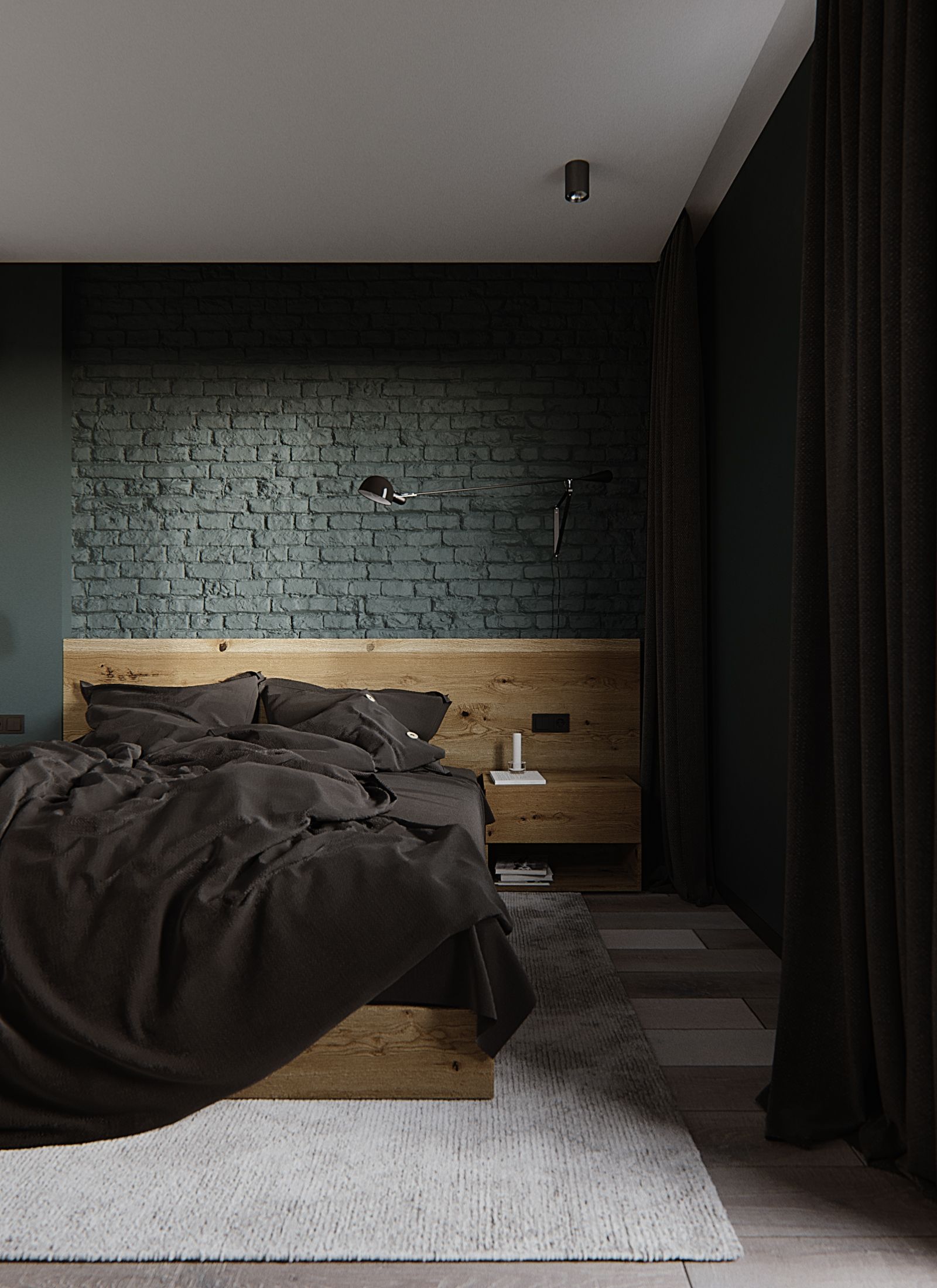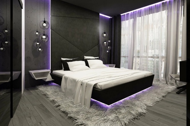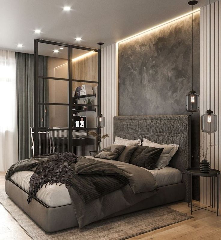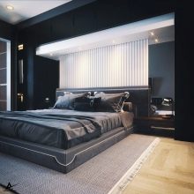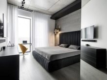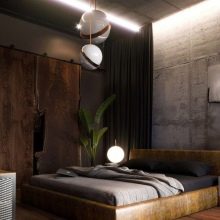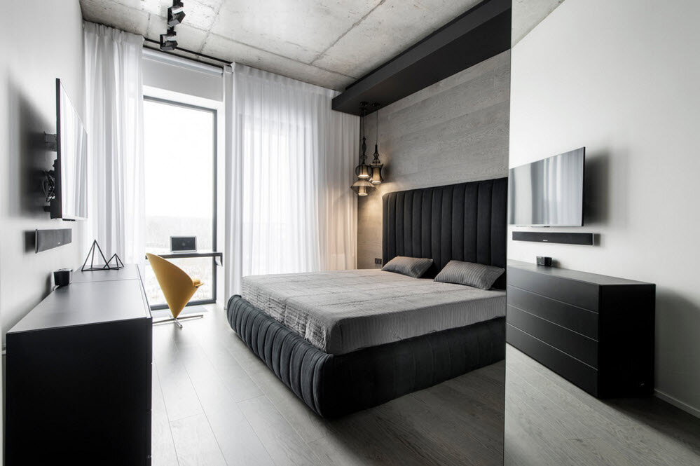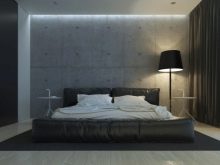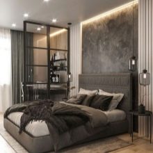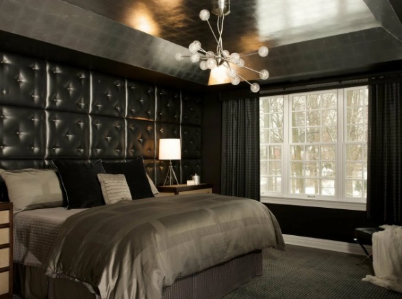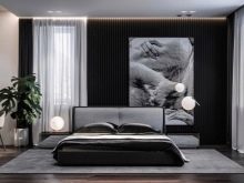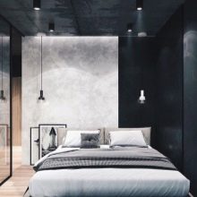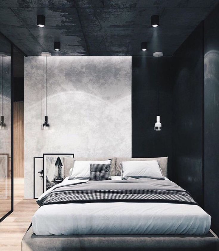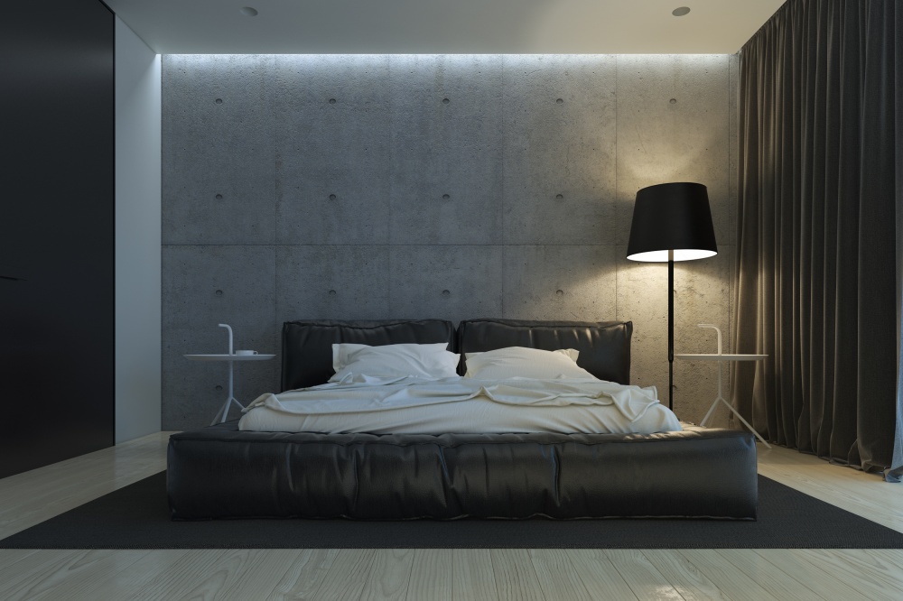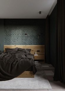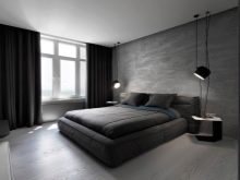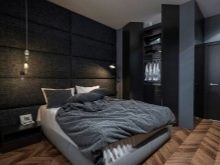 Желателно е да се подчертаят мрачни нюанси в брутална спалня.
