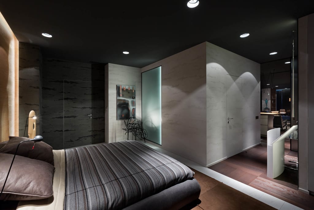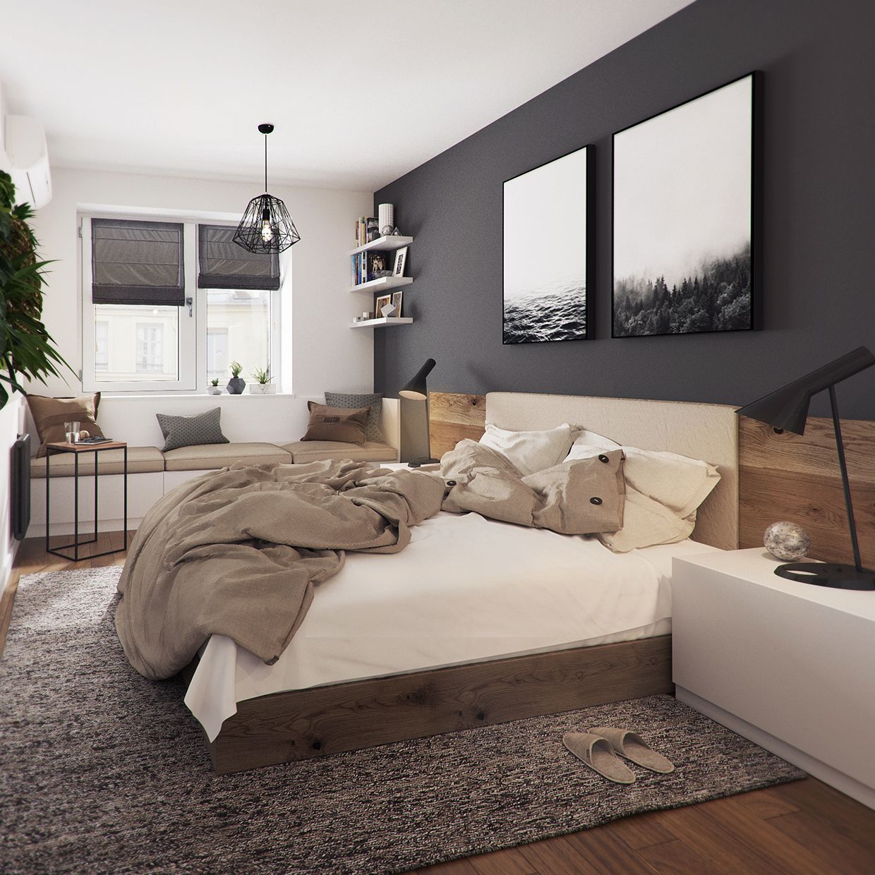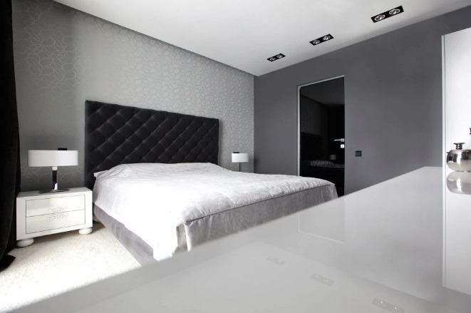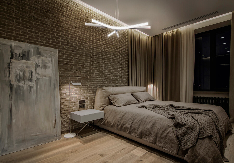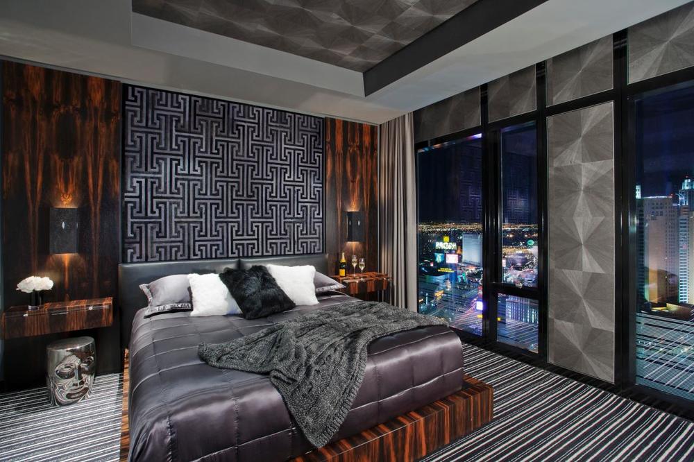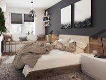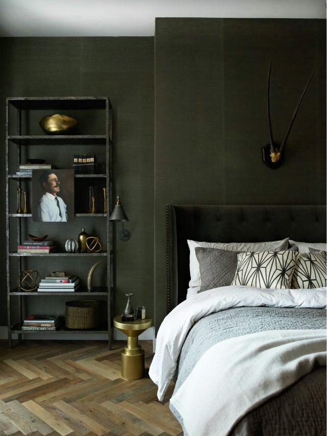 Желателно е да се подчертаят мрачни нюанси в брутална спалня.