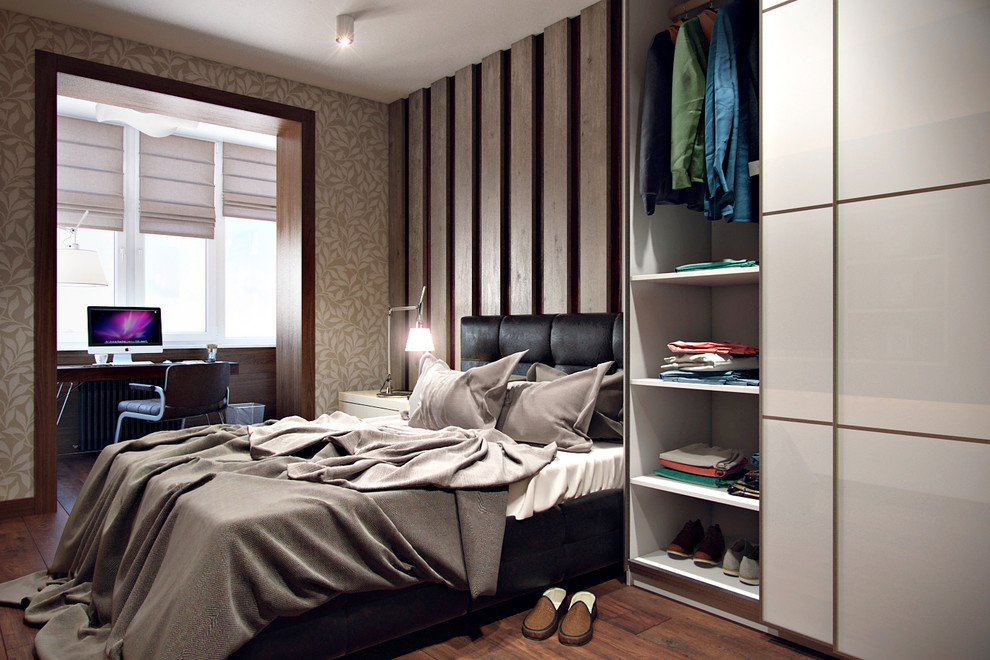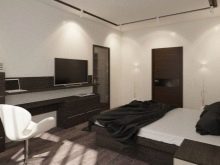 Всяко жилищно пространство трябва да бъде зонирано в отделни функционални блокове. Мъжката спалня не прави изключение, особено ако е с площ 12-15 кв. м. Тази техника ще му позволи да се съсредоточи върху изпълнението на определени задачи. Областите на хобито, съня и работното място са подчертани като приоритети.