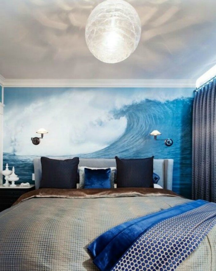 Тийнейджъри и романтични мъже често избират морския стил. Тя включва използването на сини, сини и бели нюанси. Декорът е актуален тук, предизвиквайки асоциации с далечни морета и скитания.