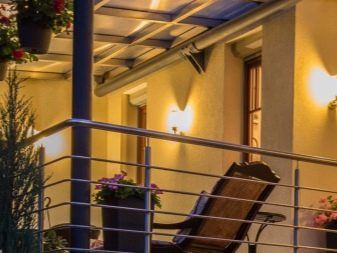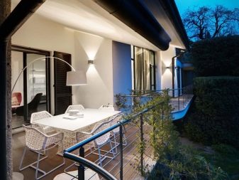 - лампи с въртящ се механизъм светят в правилната посока, в зависимост от това какво да правите на балкона - и това е много удобно, и всеки път пространството ще бъде малко по -различно.