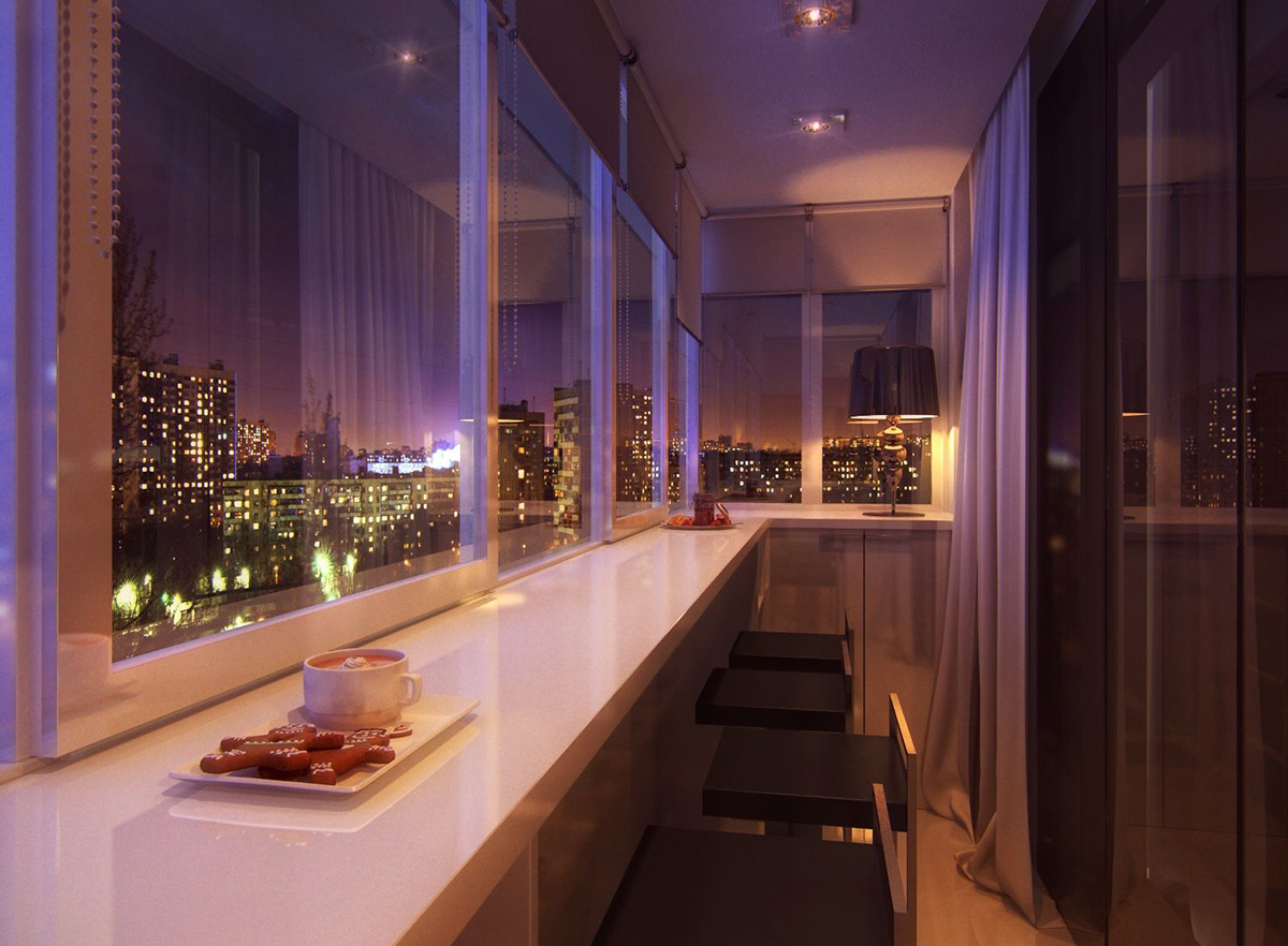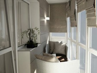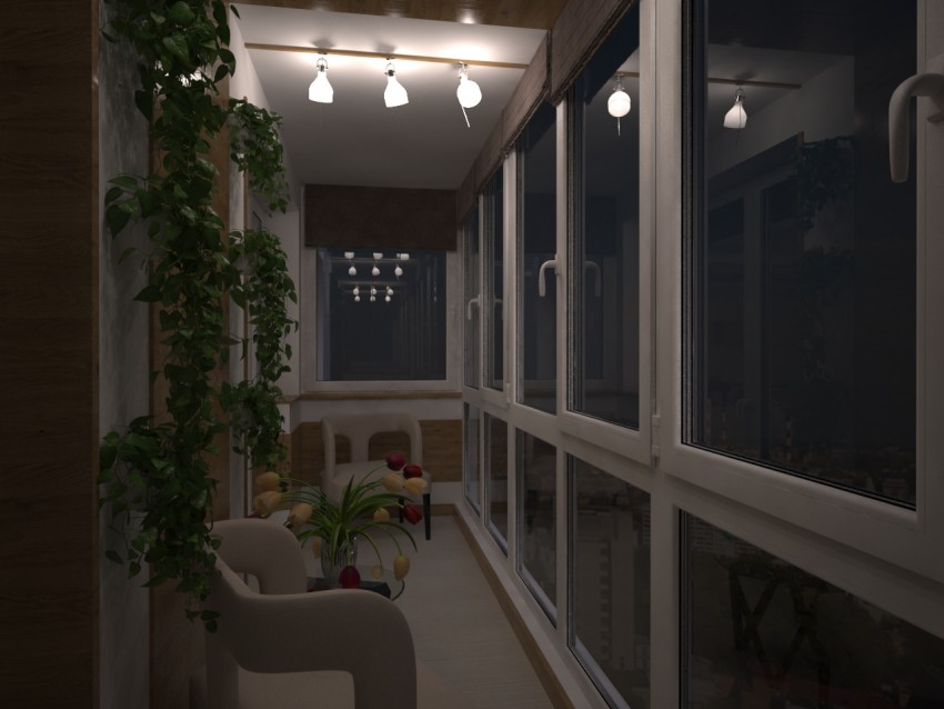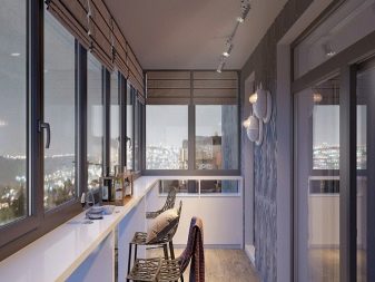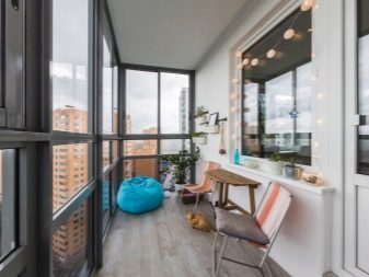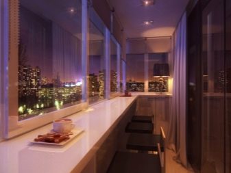 Ако зоната на остъкляване е голяма, тогава естествената дневна светлина ще бъде достатъчна, за да може балконът да функционира през деня, без да привлича допълнителни източници. Но дори и с панорамни прозорци, подсветката е незаменима вечер.