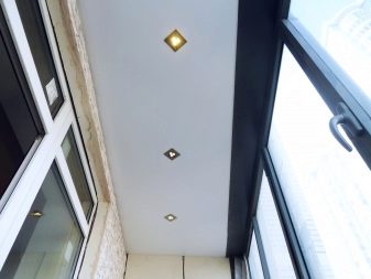 Това е името на осветителните тела, които се монтират в окачени тавани. Обикновено в такъв таван има 4-6 от тях, но в този случай всичко ще зависи от размера на балкона и изискванията на собственика. Напълно възможно е да има достатъчно от тях на балкона, в противен случай пространството ще се окаже дисхармонично. При други методи за декориране на тавана точковото осветление е проблематично.