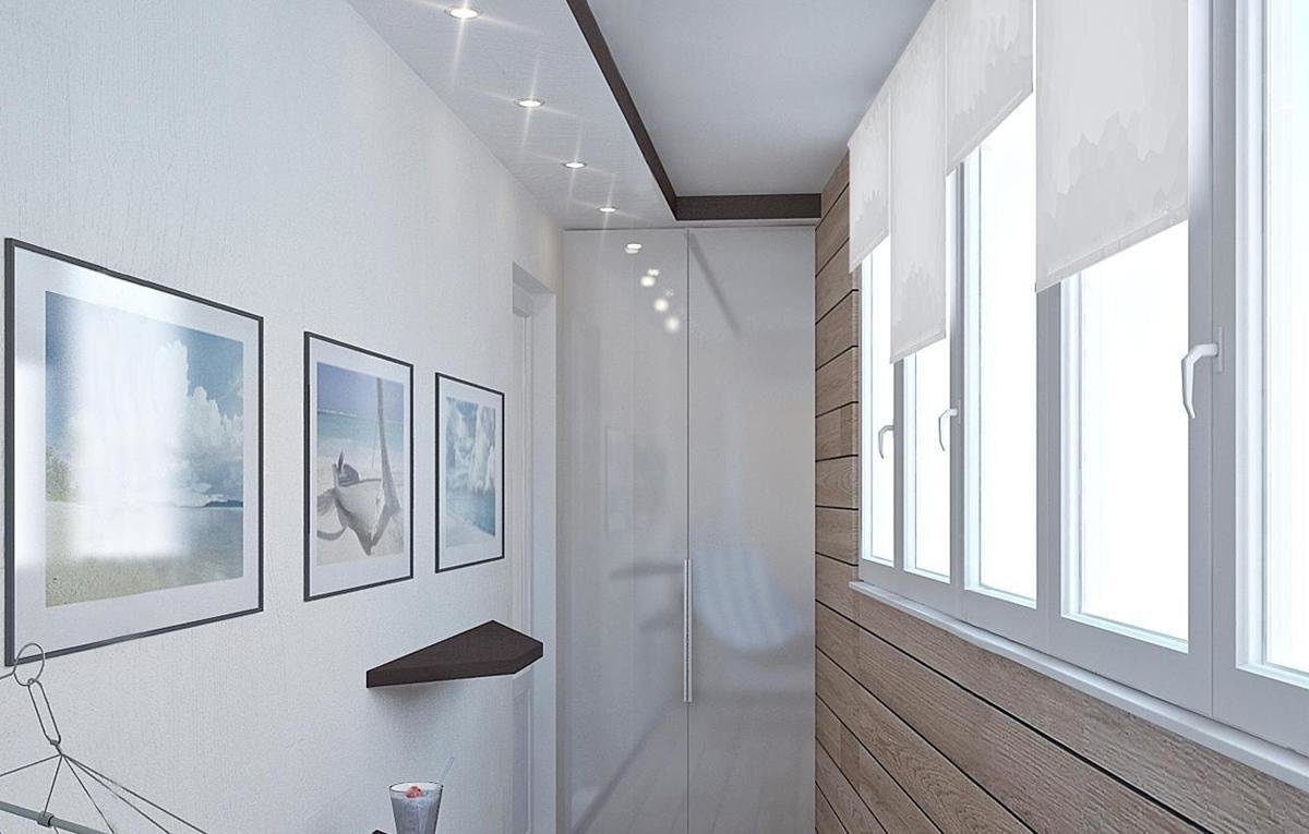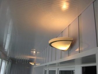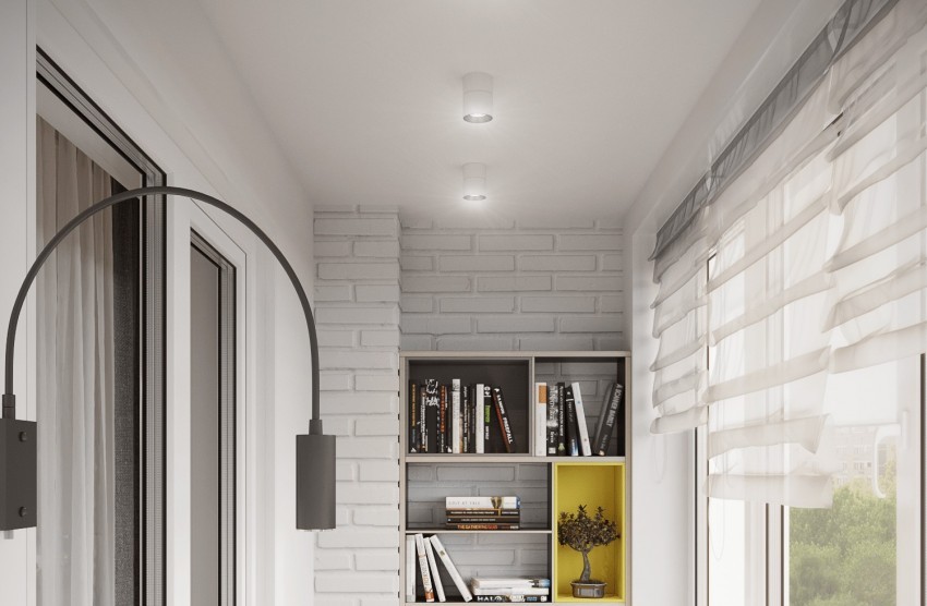 - такова лаконично таванно решение ще подхожда на ярки балкони, а интересна стенна лампа ще подчертае желаната площ;