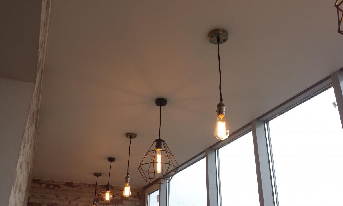 - ретро крушките не се нуждаят от плафон, тъй като сами по себе си са декоративни, очевидно е, че вградените в тавана лампи също се използват в това пространство;