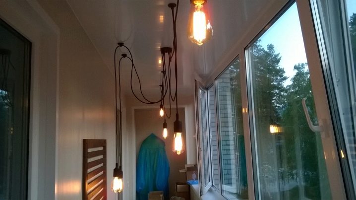 - ефирни прозрачни полилеи изглеждат оригинални и по-изгодни от вградените точкови, тъй като придават стил на интериора на лоджията;