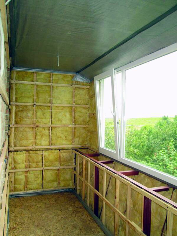 Въпреки това, когато сте изправени пред балкони, препоръчително е да го инсталирате поне върху външната стена. - в този случай може да се постави изолация в клетките на рамката и как да се създадат най -удобните условия за експлоатация на балкона като допълнително жилищно пространство.На изолирана лоджия топлоизолационните и облицовъчните материали могат да запазят своите функционални и декоративни характеристики за много по -дълго време.
