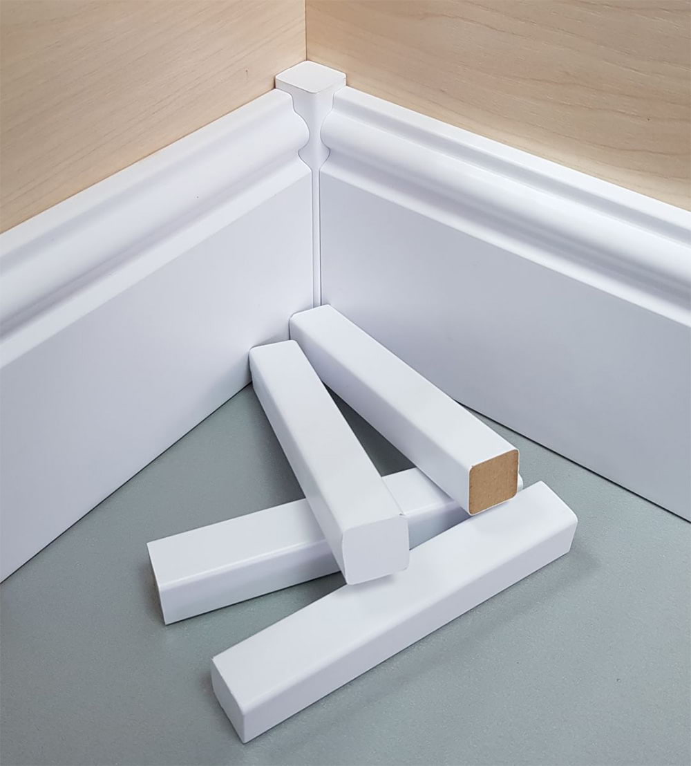 - детайлите са покрити с лепило, огънати и притиснати със сила върху вътрешните и външните ъгли на стените, обшити с MDF панели;