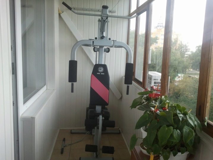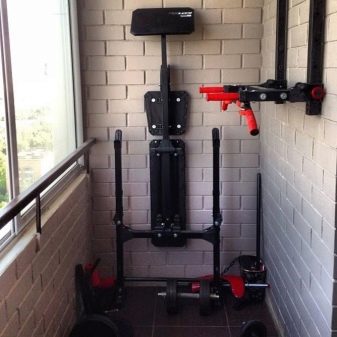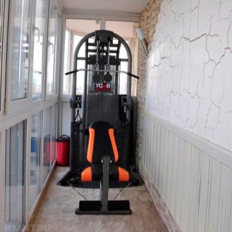 - Симулатор на блок с тежести. Подходящ за мъже, които се интересуват от изграждане на мускули. Например, на балкона ще бъде възможно да се постави устройство за тренировка на мускулите на ръцете, торса, дори краката.