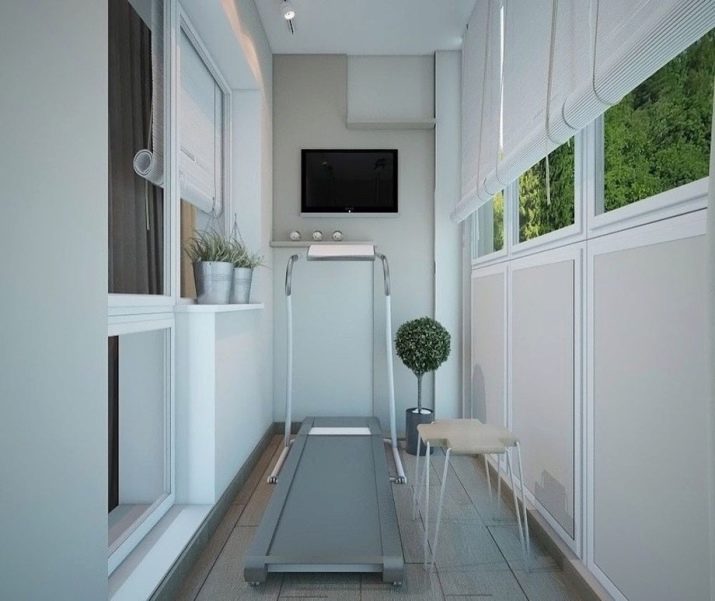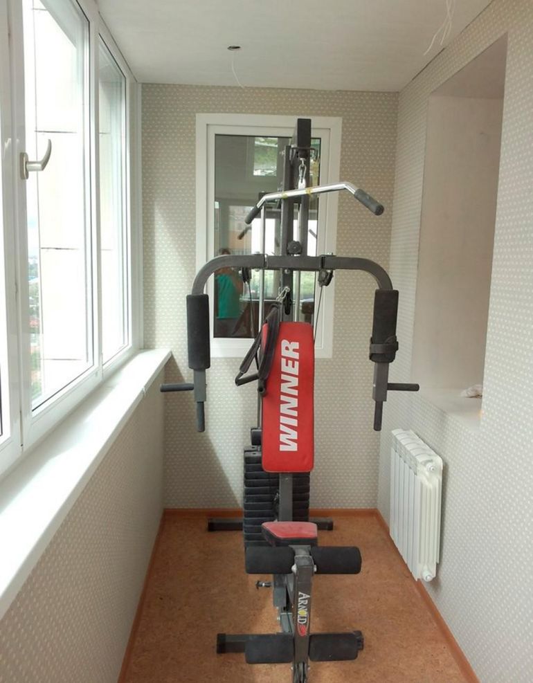 Единственият недостатък на такава стая е нейната малка площ. Въпреки това, с правилния подход, дори малък балкон може да се превърне във функционална фитнес зала.