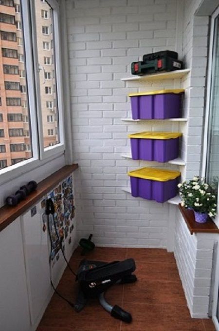Всяка от изброените опции лесно ще се побере на балкона, независимо от площта на наличното пространство. Освен това ще бъде възможно да се инсталира малка пейка на закрито, да се поставят гири или друго спортно оборудване.