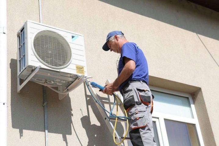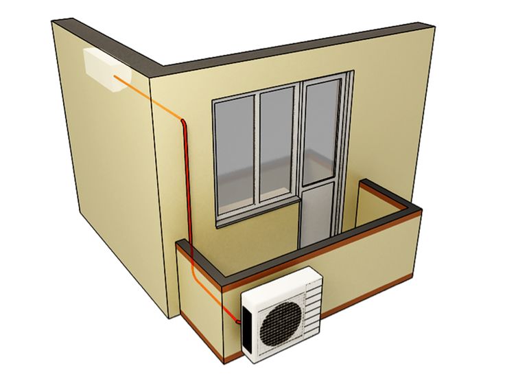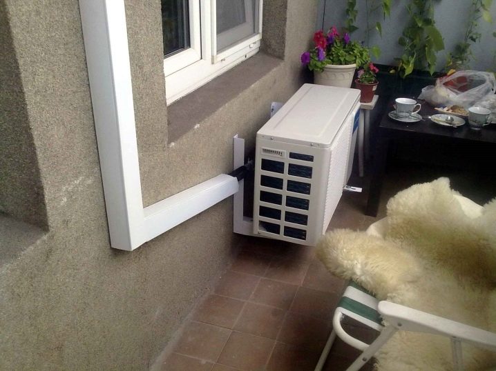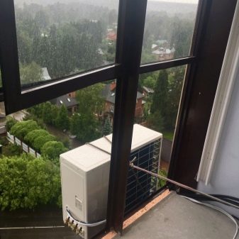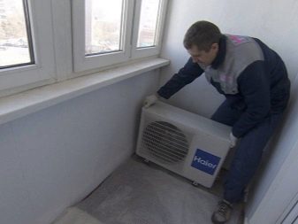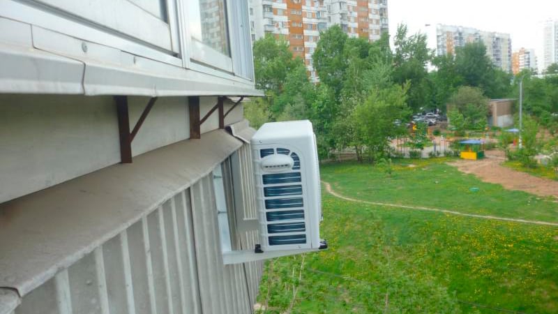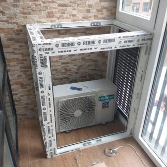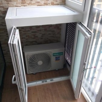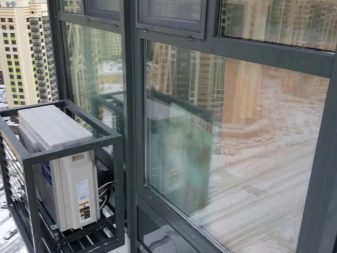 На остъклен балкон се препоръчва да инсталирате климатик отвън на парапета - когато прозорците на остъкления балкон или вентилационните отвори не се отварят. Уверете се, че конструкцията на окачената част на балкона е достатъчно надеждна: теглото на външното тяло, в зависимост от капацитета, достига 60 кг.