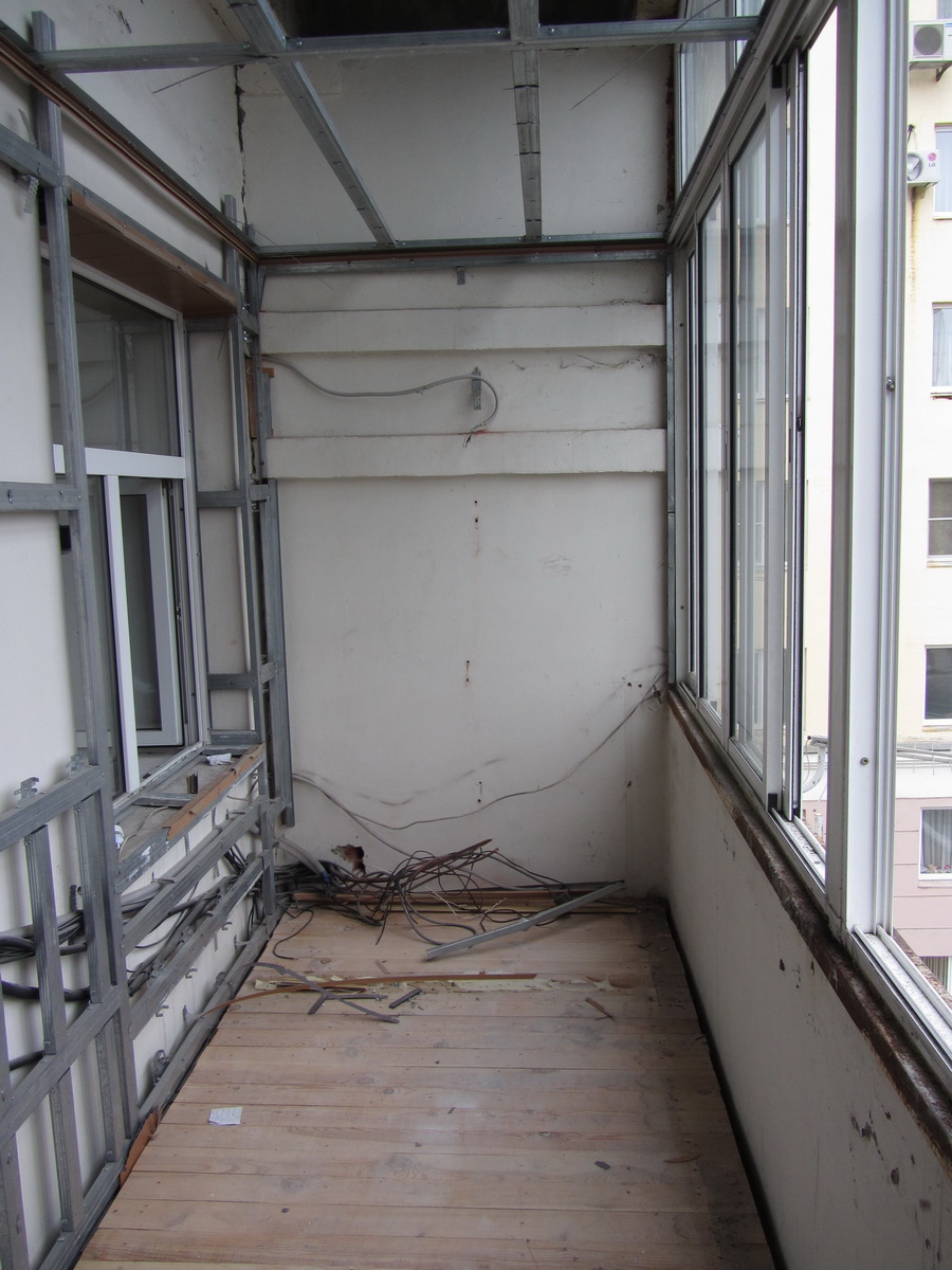 Премахнете чужди предмети от балкона, които пречат на монтажа. Премахнете остатъците, останали след преместване на неща и предмети. Прикрепете към желаното място допълнителни скоби и закачалки с амортисьори. Донесете отделен 220-волтов електропровод до мястото на вътрешното тяло, оборудван с допълнителен автоматичен предпазител, който трябва да бъде инсталиран на място, защитено от влага.