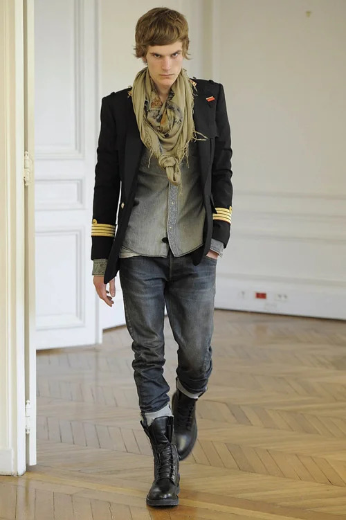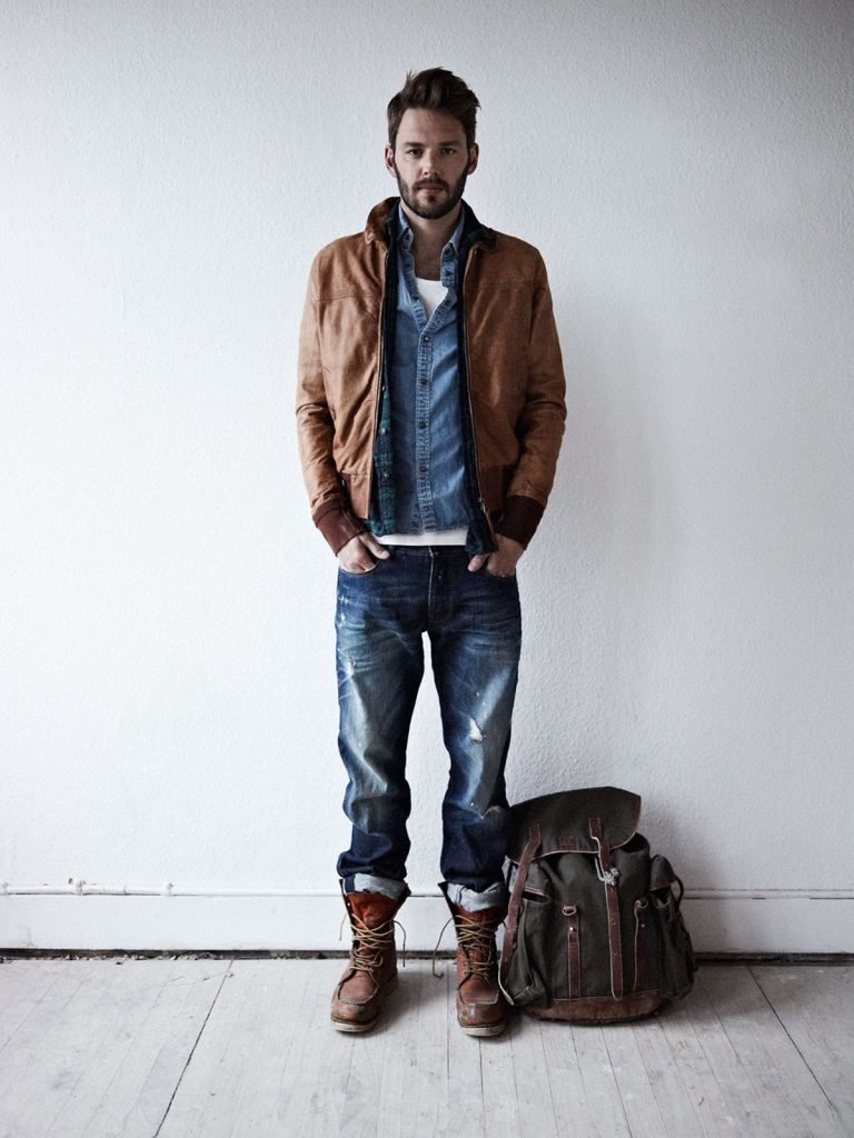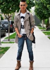 Дънките са друга универсална част от мъжки гардероб, която може да се носи безстрашно с боти до глезена. Важно е да имате предвид, че дънките трябва да бъдат прибрани вътре в обувката, като същевременно не обръщате специално внимание на вида кройка (права, заострена или свободна).