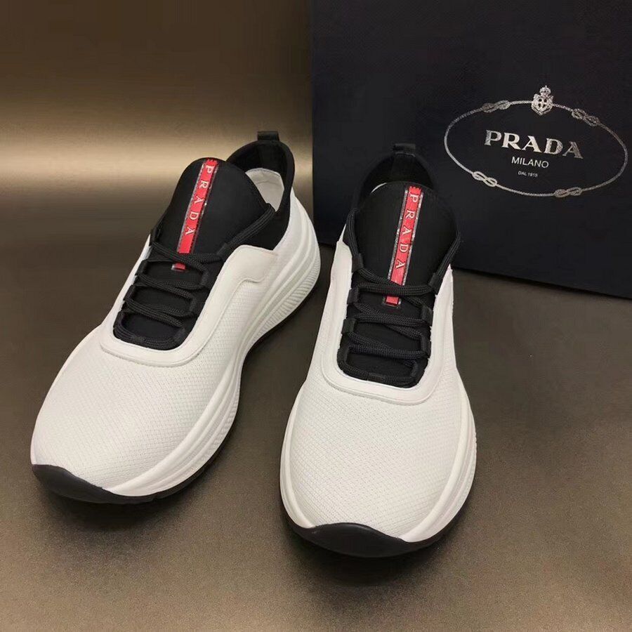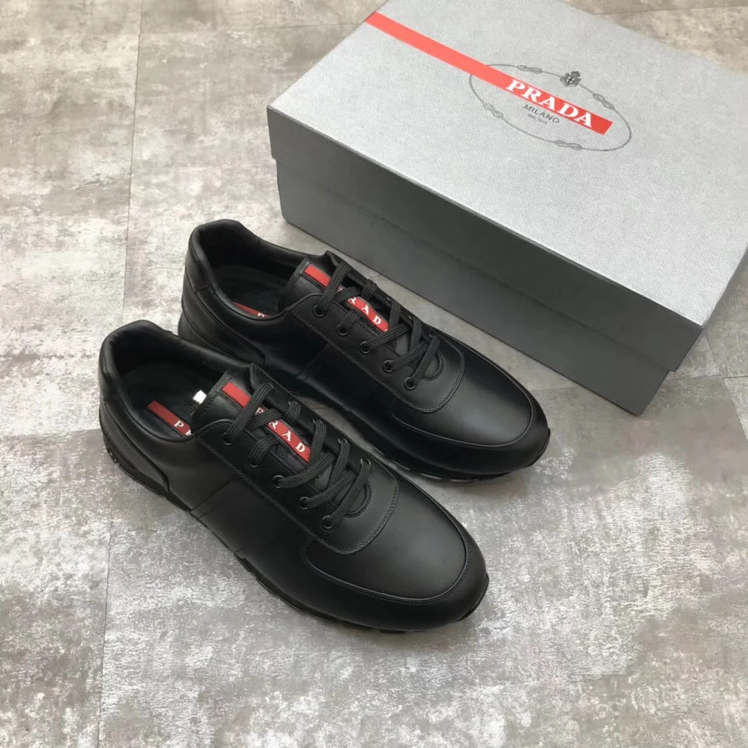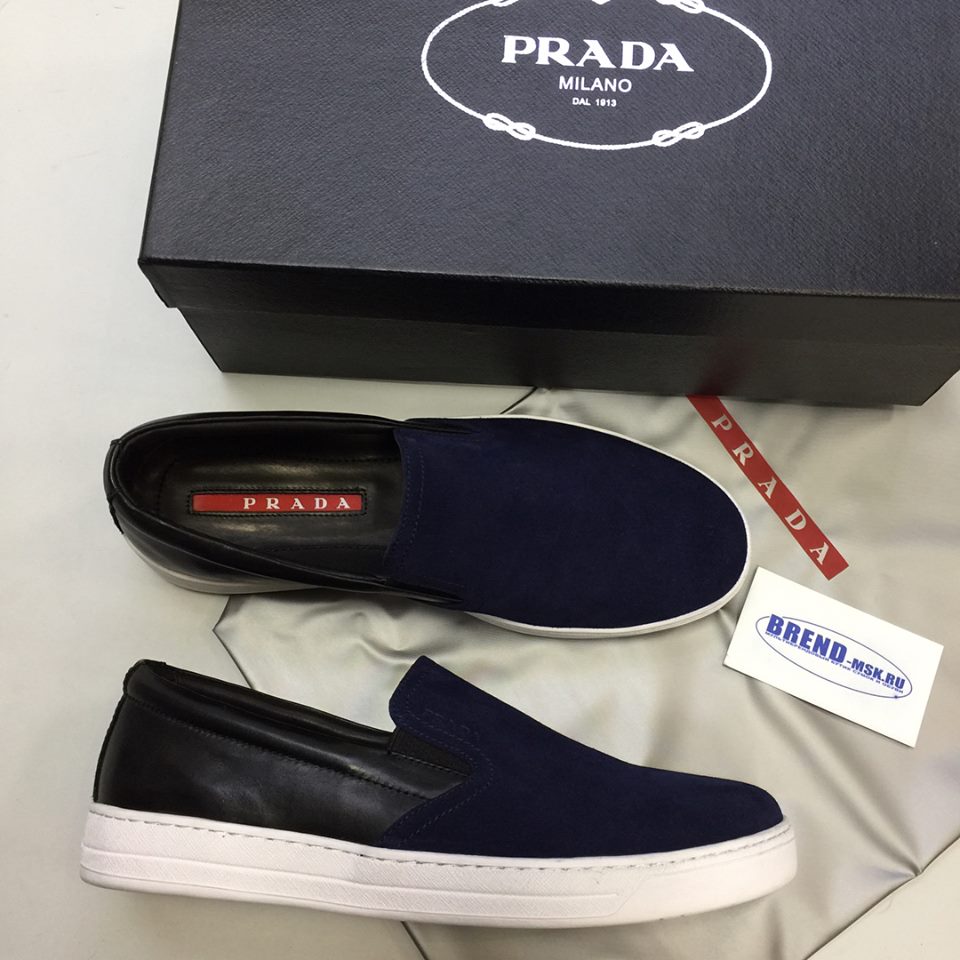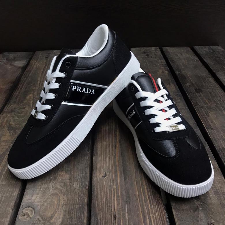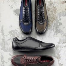 Мъжки обувки Prada са представени в широка гама. Оксфорди, броги или обувки дерби могат да бъдат съчетани с бизнес костюми. Тези, които предпочитат спортен и непринуден стил на облекло, избират хай-топ, кецове, кецове, слипони. Компанията произвежда и мокасини, мокасини, еспадрили, сандали. За прохладния сезон се предлагат високи ботуши, ботуши, изолирани маратонки.