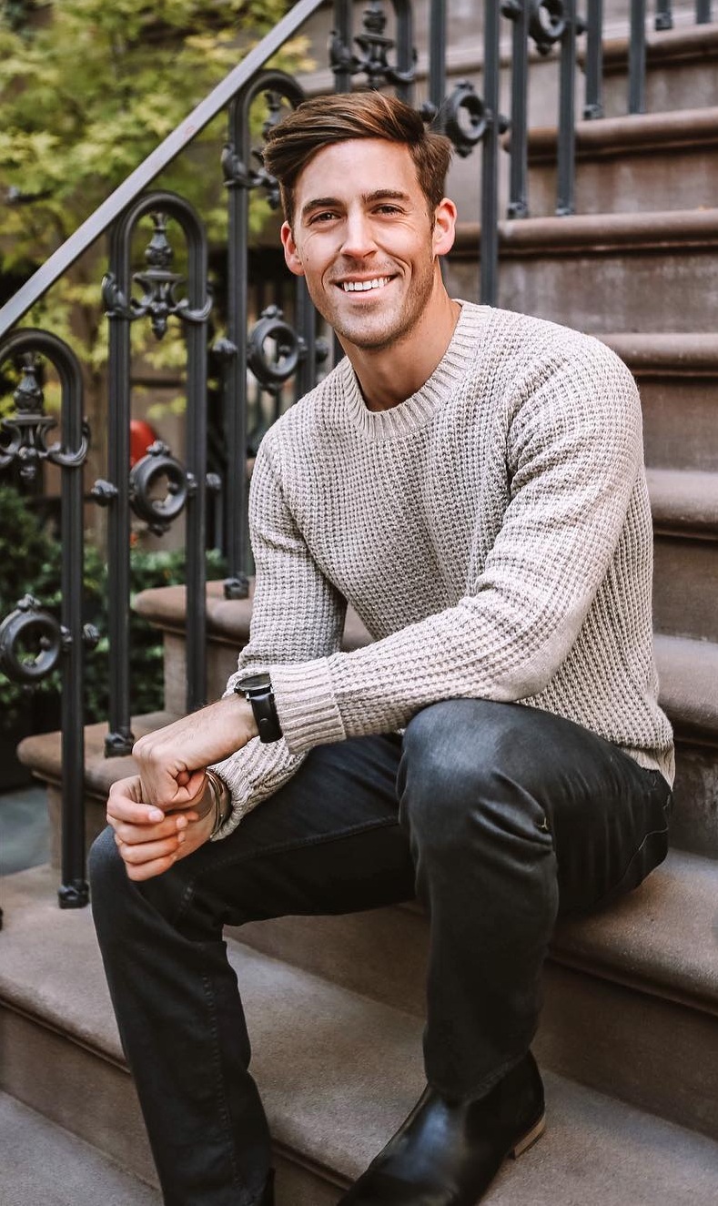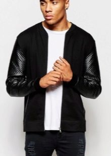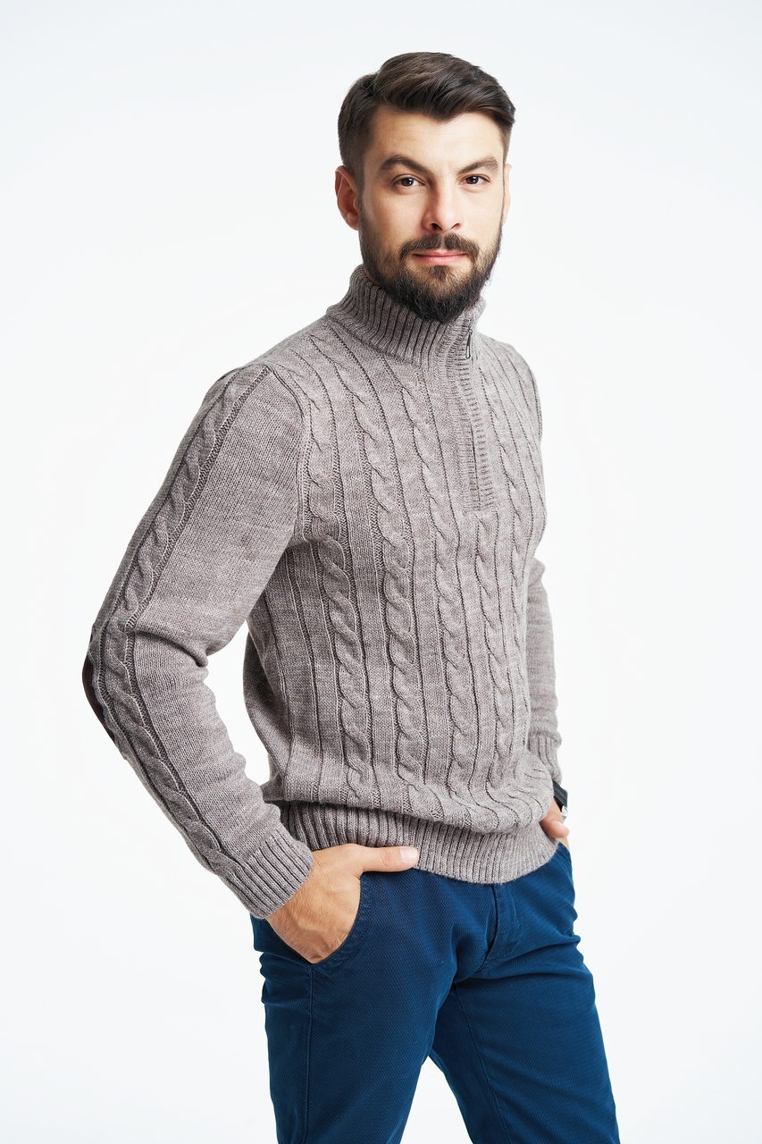 Трикотажната тъкан е изработена от памучни, вълнени, синтетични и полу вълнени влакна... Естествената тъкан е доста рядка, най -вече има примеси от синтетика. Плетеният мъжки есенен гардероб включва водолазки и пуловери.