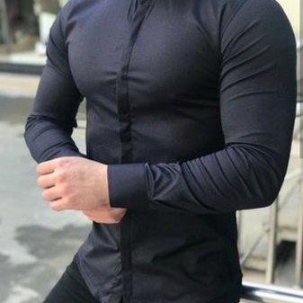 - Монтиран... Подходящ за мъже със спортно телосложение, тъй като материята на такива ризи приляга по тялото и подчертава красива фигура и ширина на раменете. Дебелите мъже трябва да се въздържат от такива опции. Стилът се нарича slim-fit.