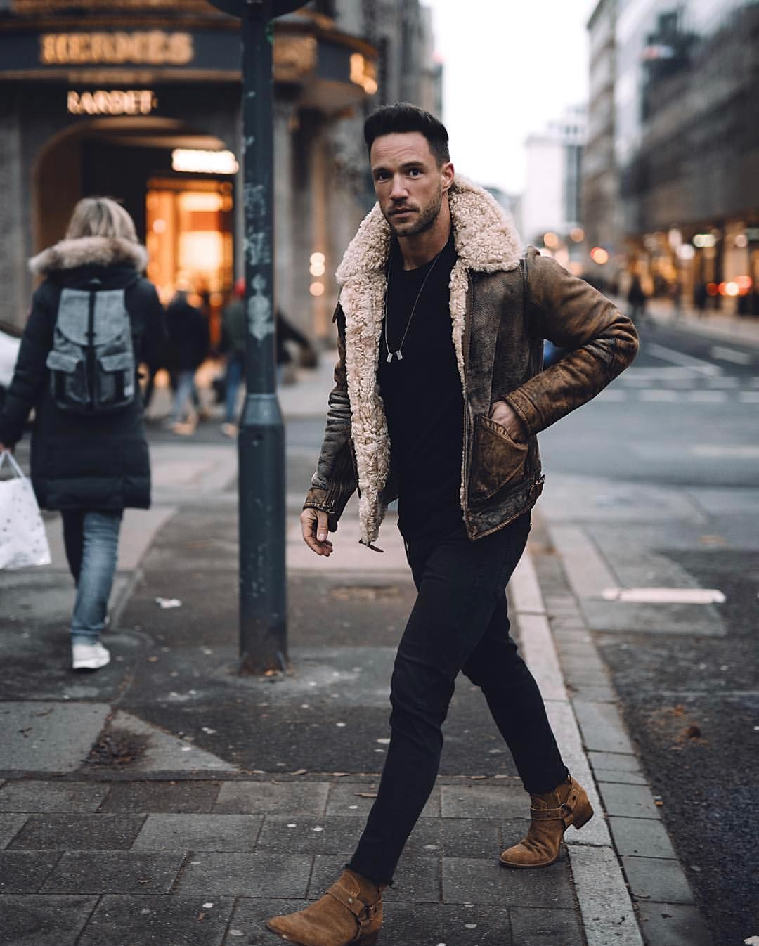 Създава доста брутален образ. Якета с права кройка, дъждобрани, кожени якета ще накарат всеки мъж да се чувства уверен. Подходящ за всички възрасти, както млади, така и над 50 години. Предимно в съчетание с плоски панталони. Те могат да бъдат изработени от естествена, изкуствена или еко кожа.